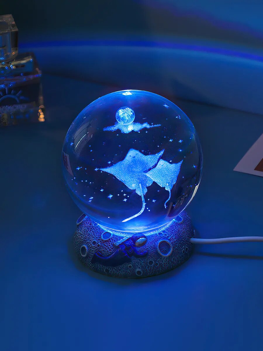 Прикроватный ночник-светильник хрустальный шар Manta Ray с голубой подсветкой 8 см интересное: