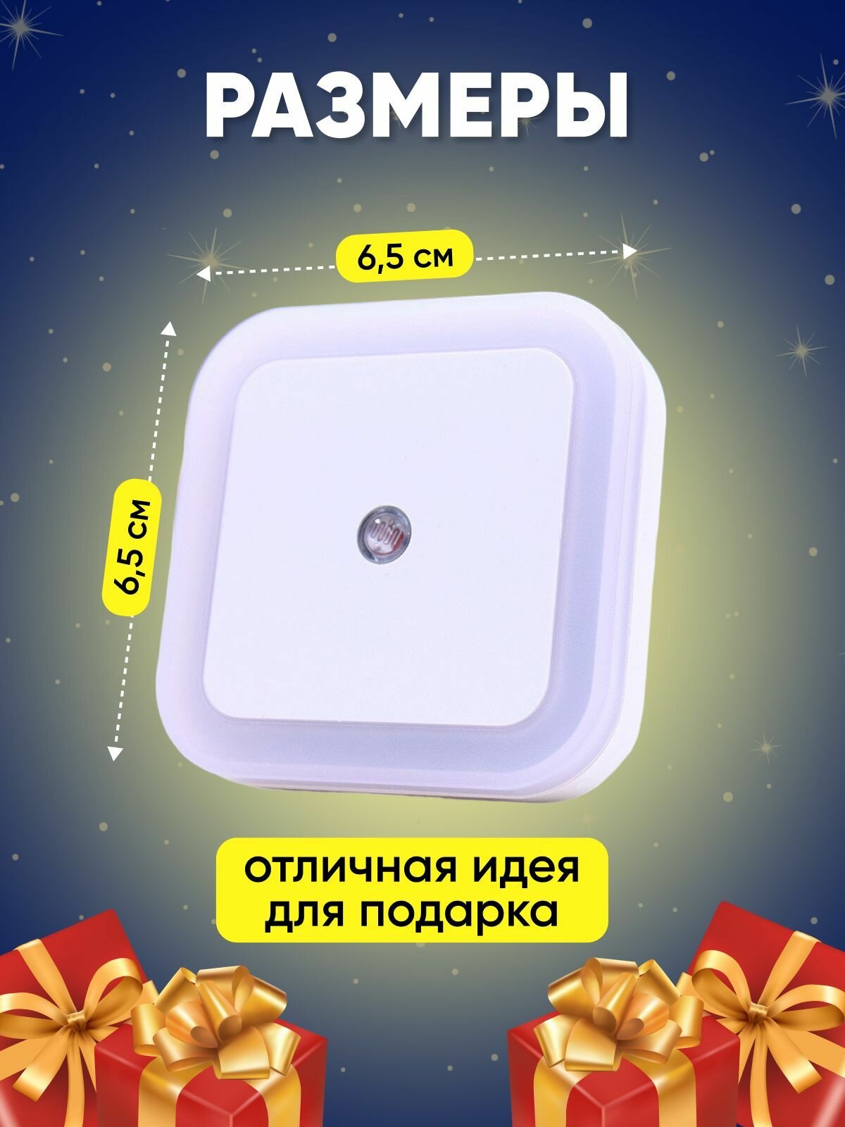 Лампа светильник ночник в розетку с датчиком освещенности, теплый белый свет, 3200К
