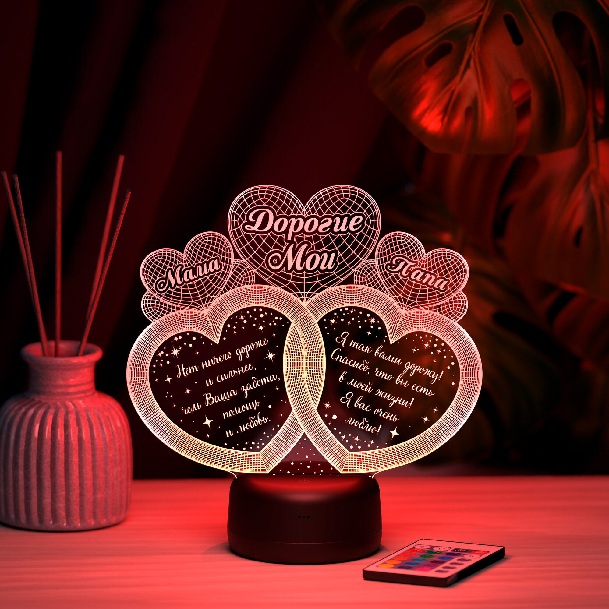 Ночник подарок Любимые Мама и Папа (я вас очень люблю) интересное:
