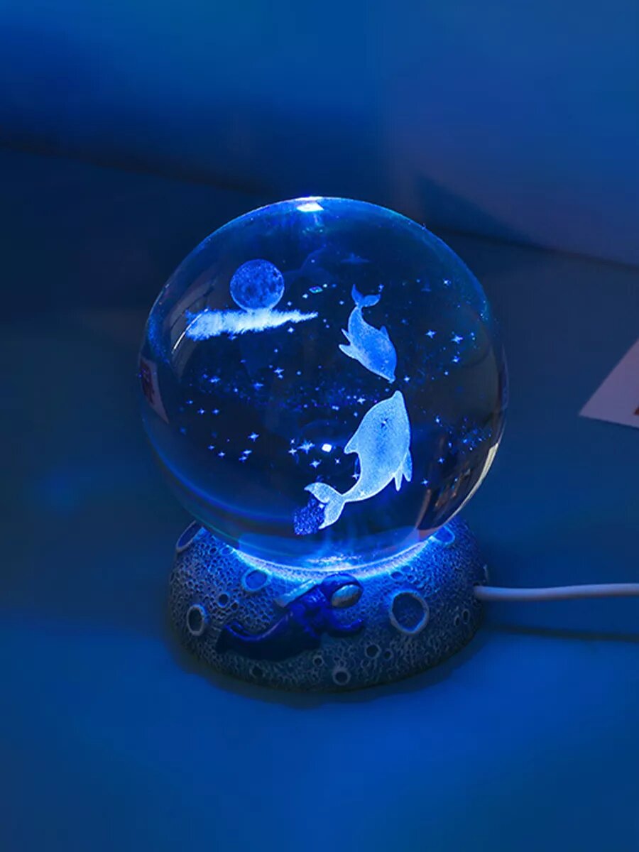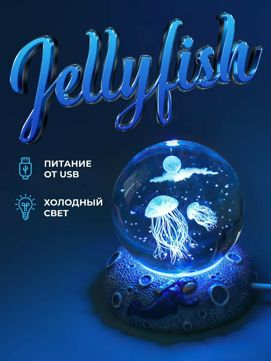 Прикроватный ночник-светильник хрустальный шар Jellyfish с голубой подсветкой 8 см интересное: