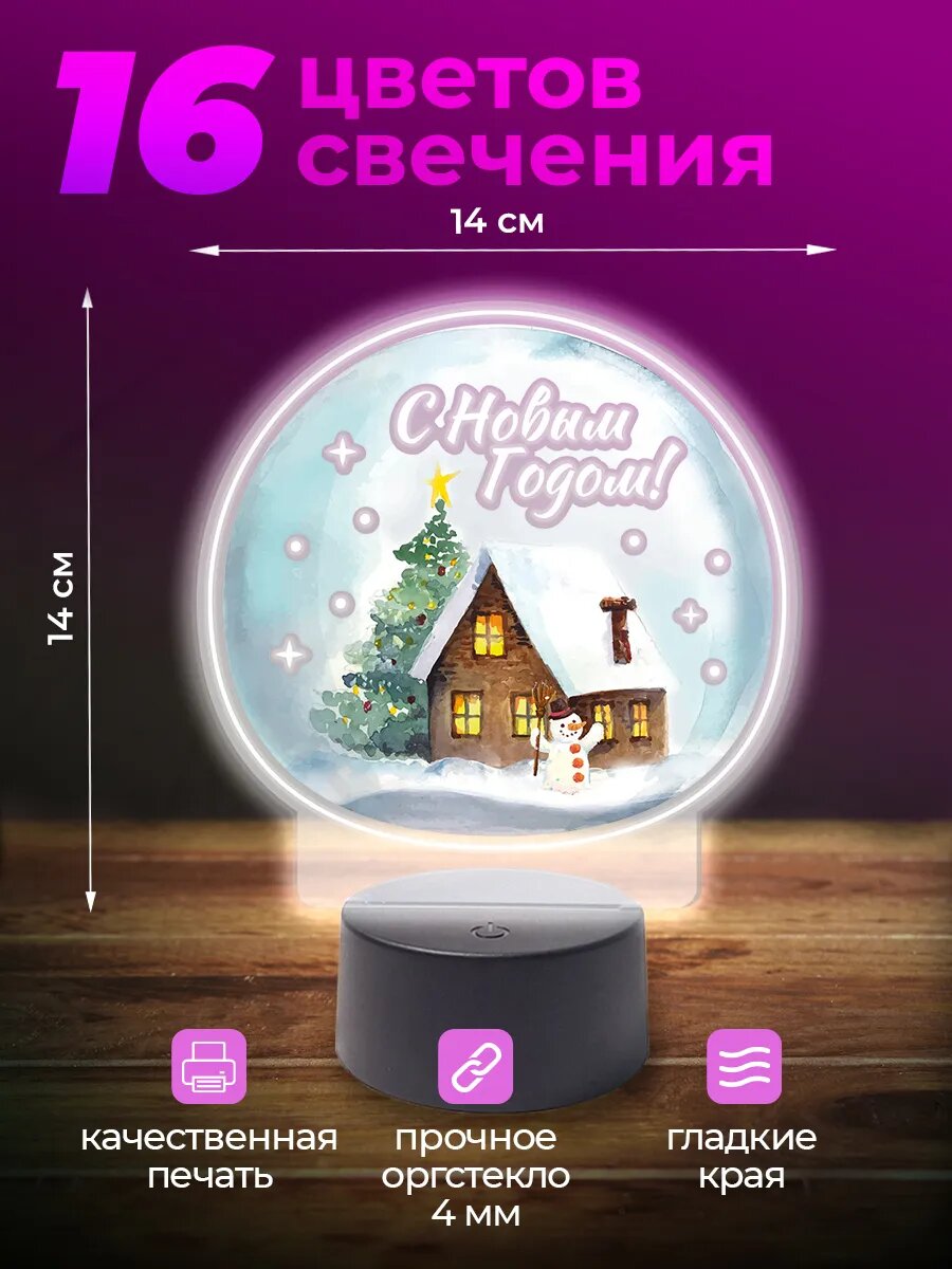 Настольный светильник Оранж Сувенир "Снежный шар", акрил, USB/3АА, 16-цветная подсветка интересное: