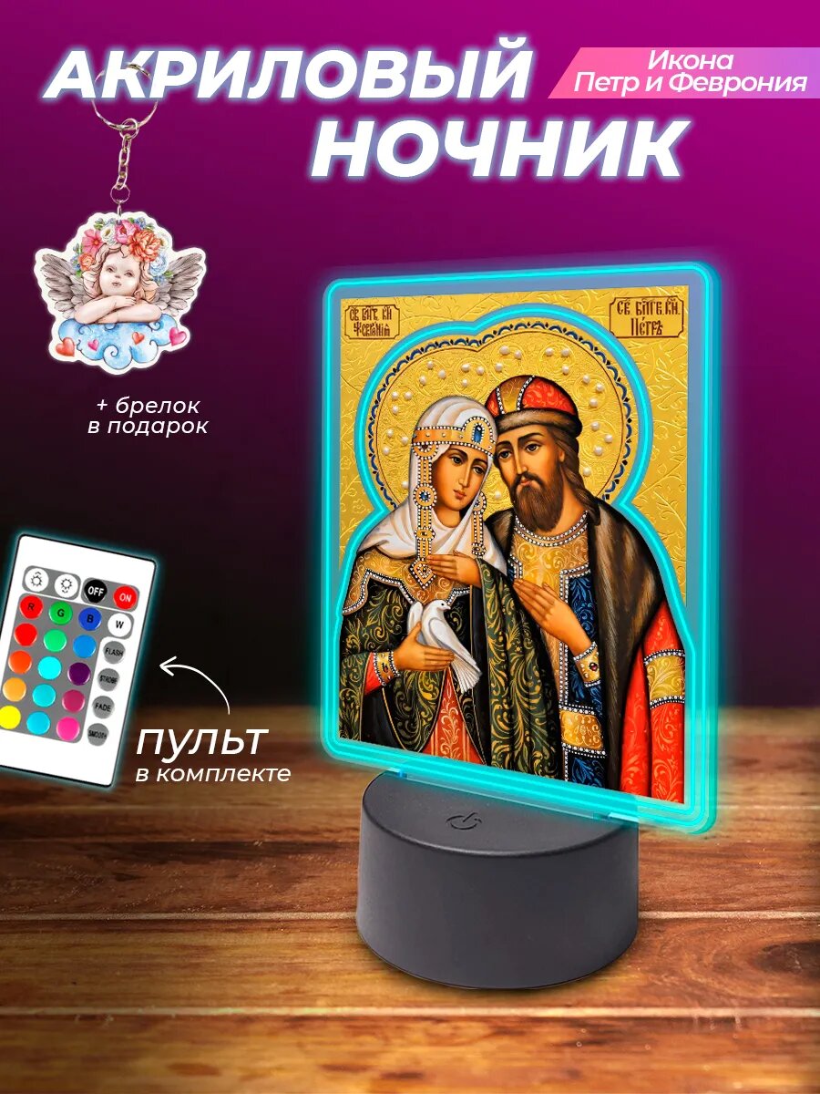 Ночник Оранж Сувенир "Икона Петр и Феврония", акриловый, 18см, цветное свечение интересное: