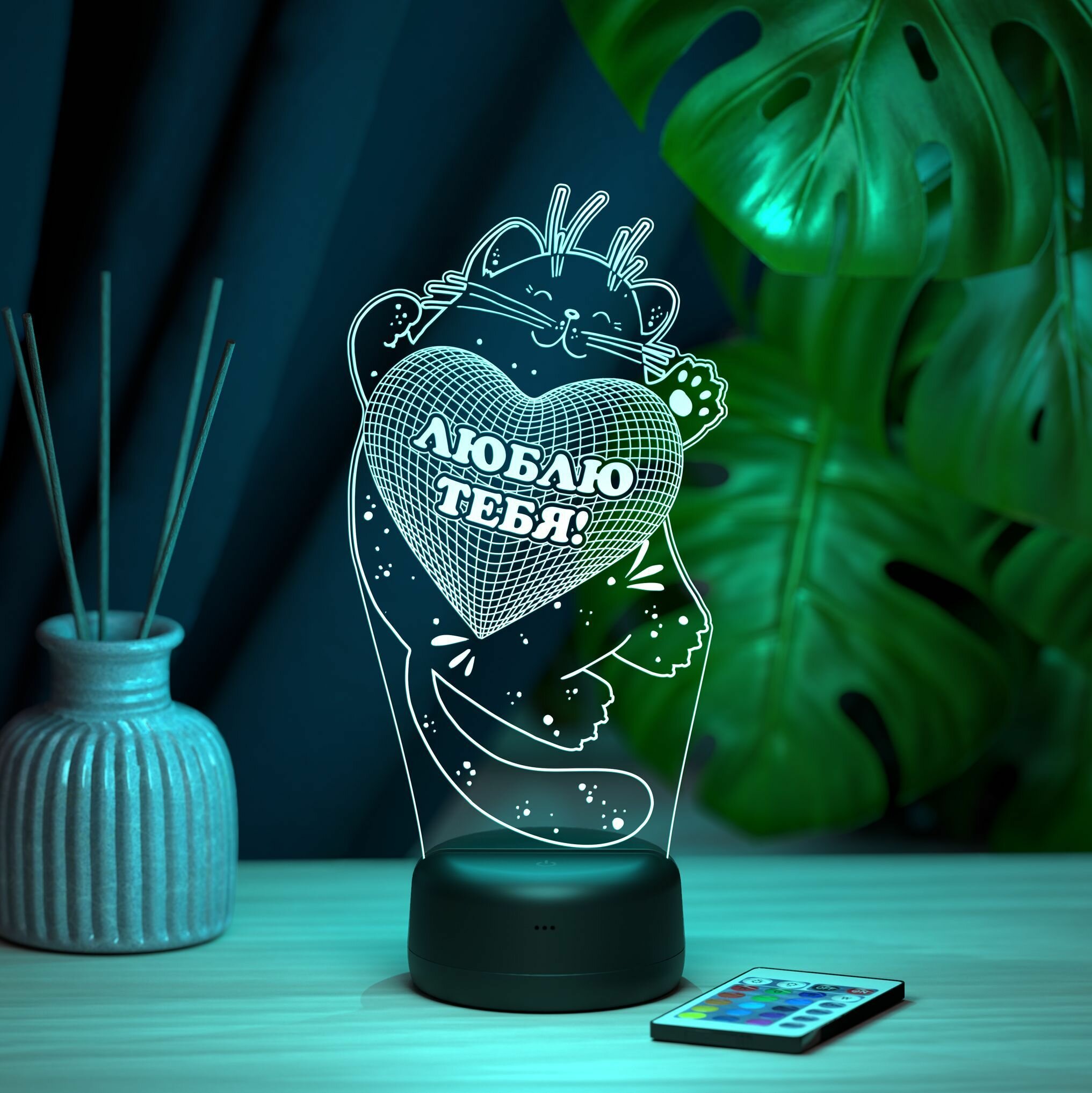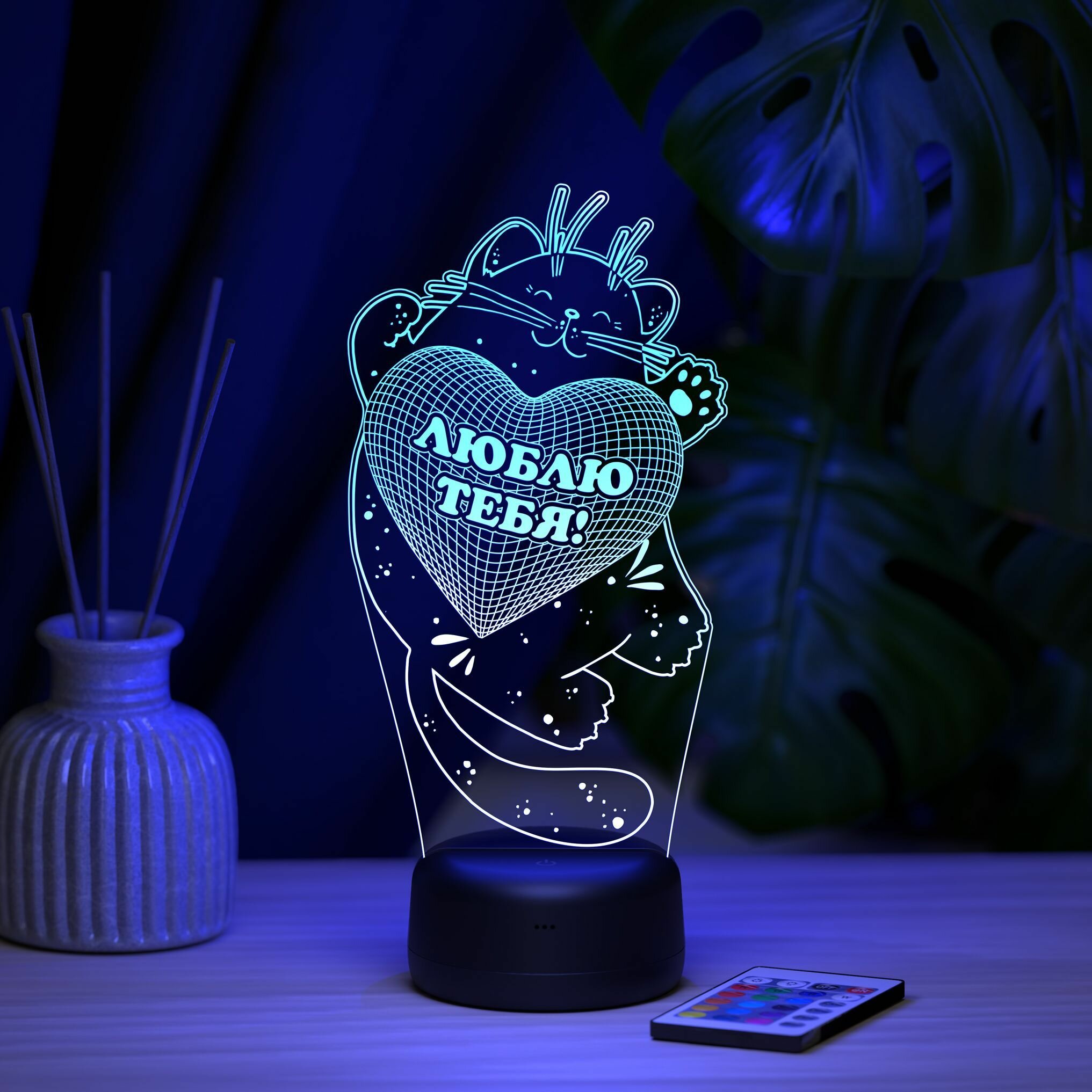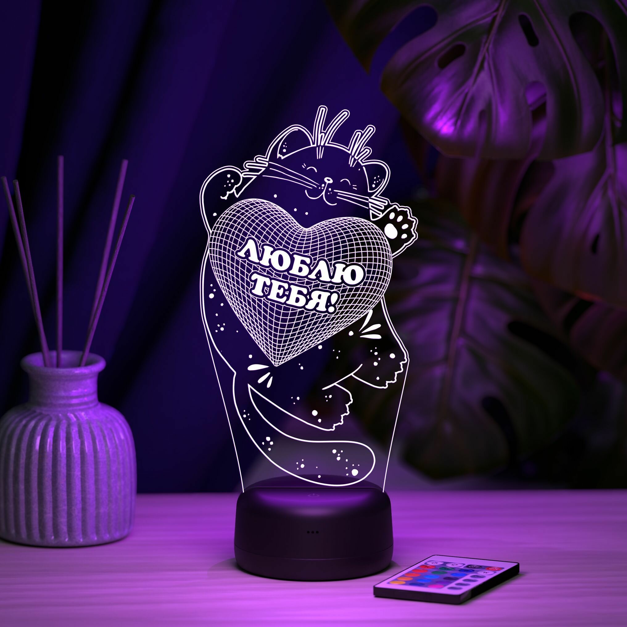 Купить Ночник Кот с сердечком (люблю тебя) девушке, любимому на 14 февраля