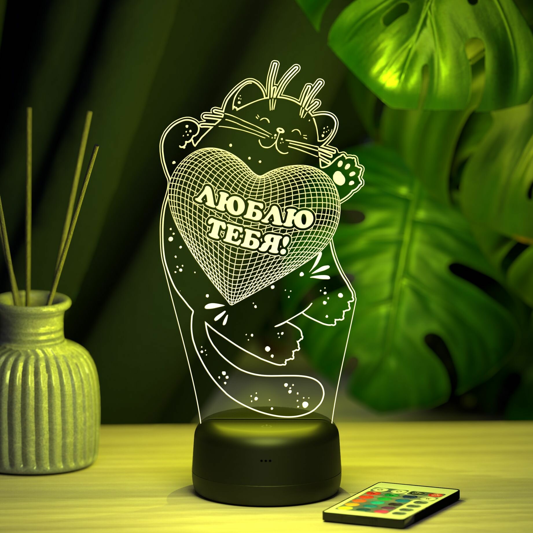 Ночник Кот с сердечком (люблю тебя) девушке, любимому на 14 февраля интересное: