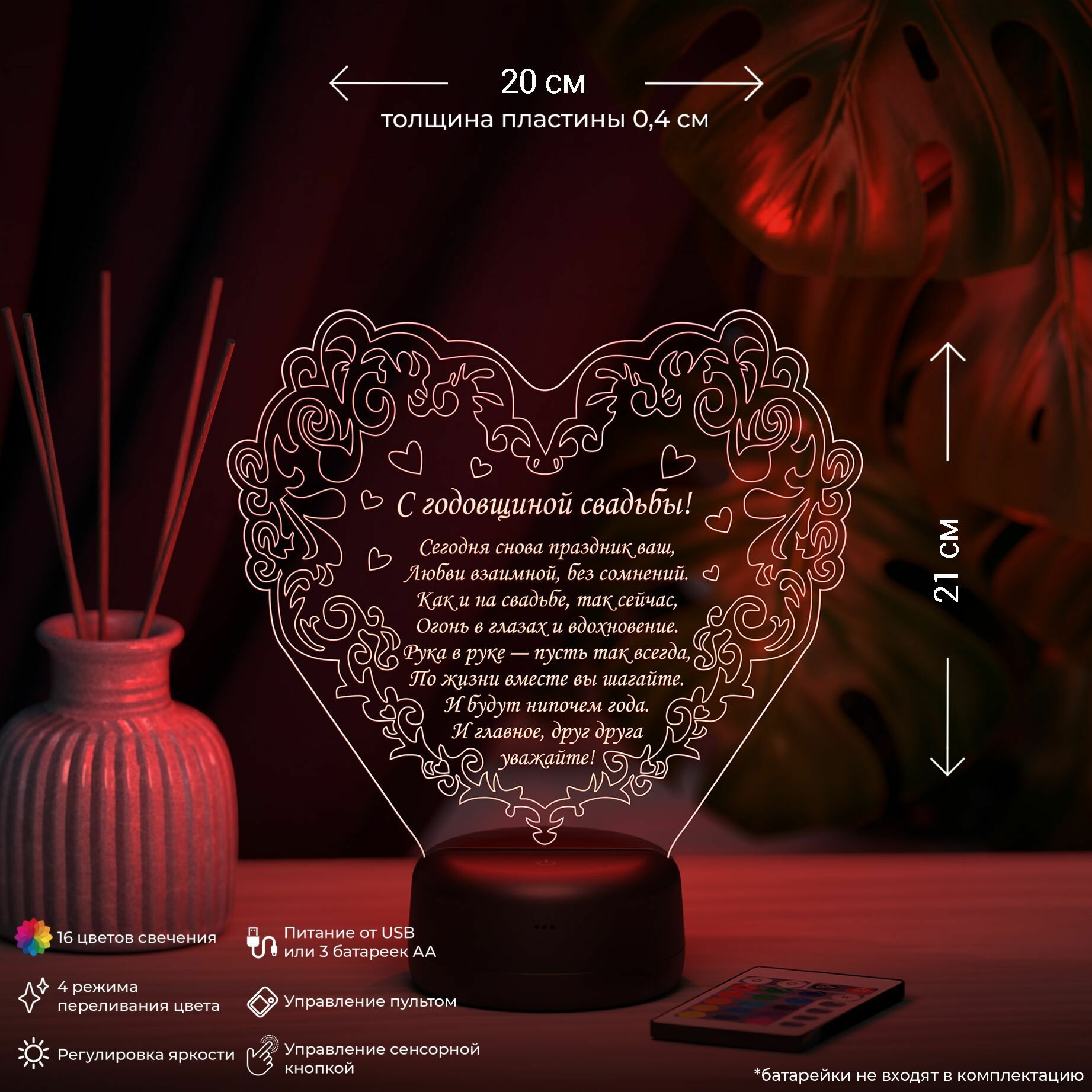 Ночник "Вензельное сердце" - подарок на годовщину свадьбы, сувенир интересное: