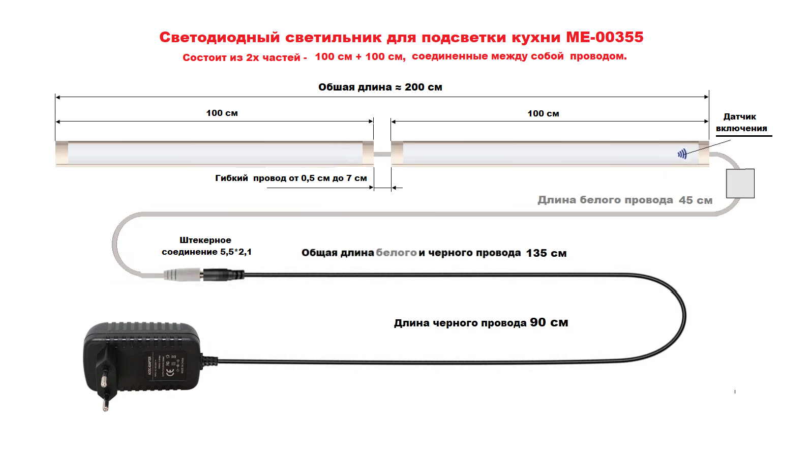СохранитьСветодиодный светильник для кухни под навесные шкафы, с включателем от взмаха руки 200см (из 2х частей 100см+100см), 3200К-теплый белый. интересное: