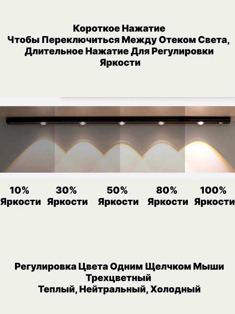 Светильник кухонный беспроводной, светодиодный, 60см, Белый, встроенный аккумулятор, датчик движения интересное: