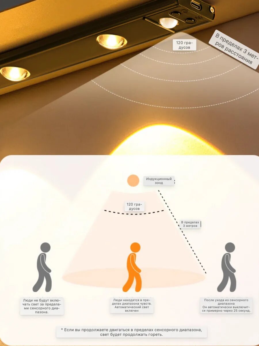 Светильник кухонный беспроводной, светодиодный, 40см, Черный, встроенный аккумулятор, датчик движения интересное: