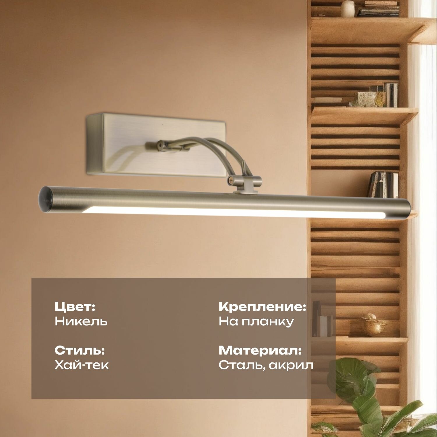 Настенный светильник Zortes BESSER, Мощность- 9Вт, Тип лампы -Встроенный LED, Цвет - Никель, Длина 450mm