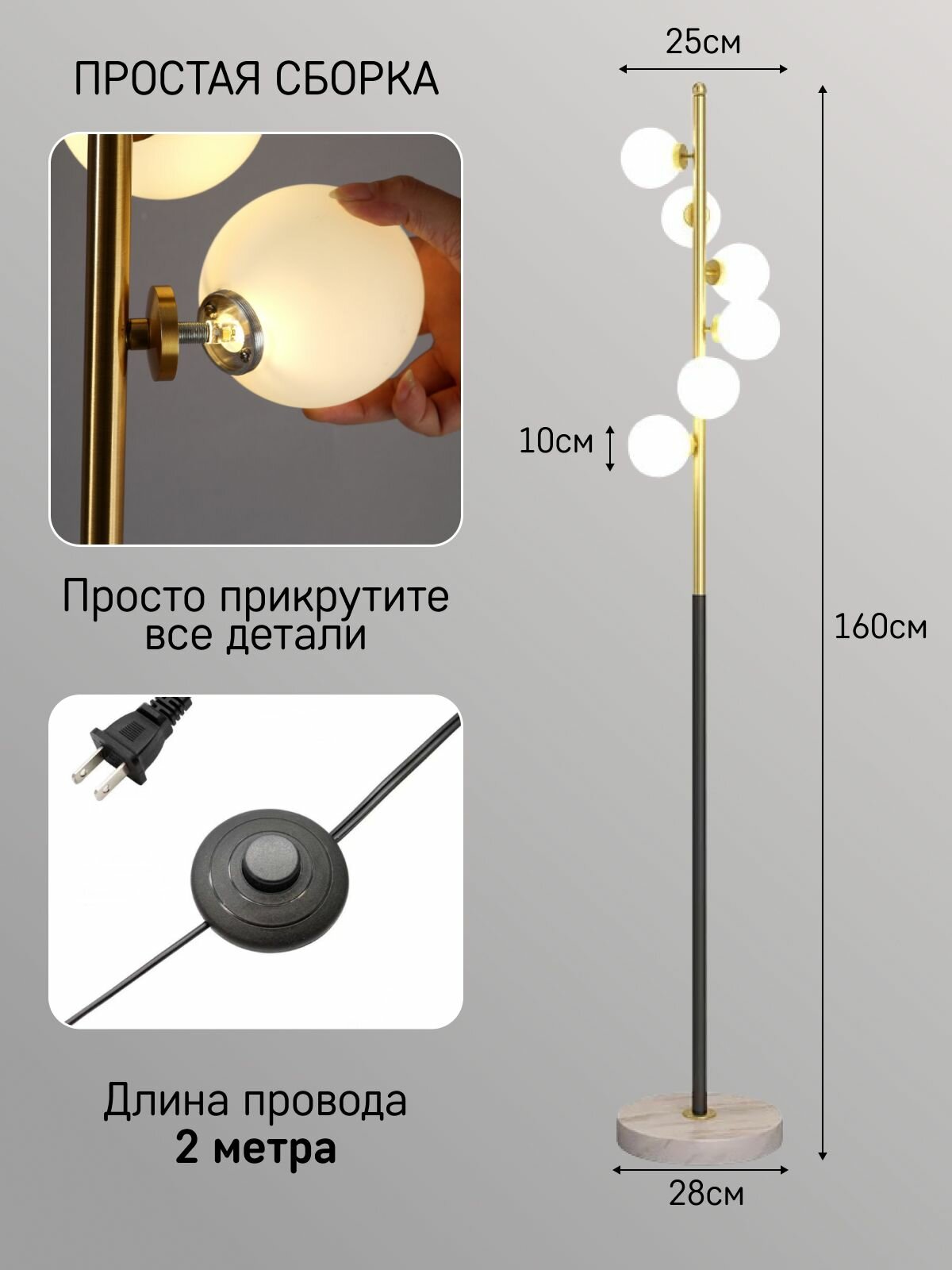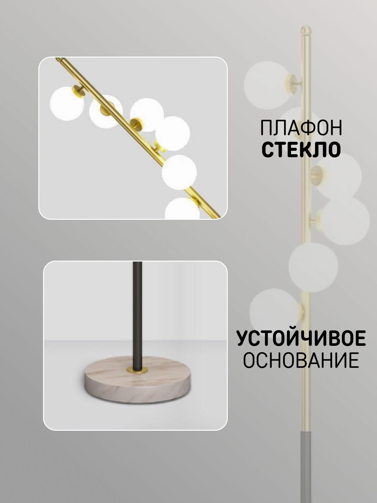 Торшер напольный ЭлисСвет светильник с круглыми лампами, черный/золотой 938LF/6L BK+GD интересное: