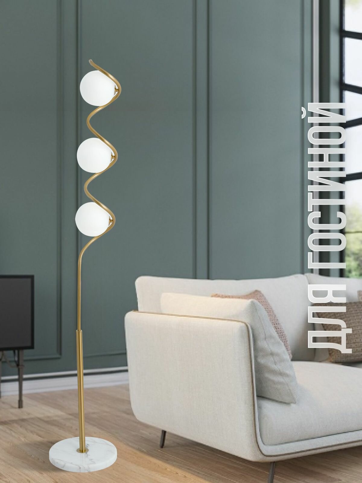 Торшер напольный ЭлисСвет светильник с плафоном шары, золотой 10125LF/3L GD интересное: