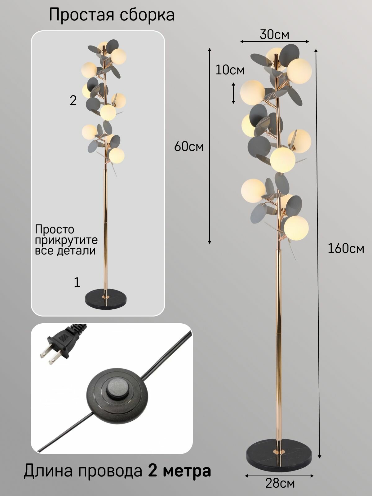 Торшер напольный ЭлисСвет светильник с круглыми лампами, золотой 5821LFa-1L GD+Grey интересное: