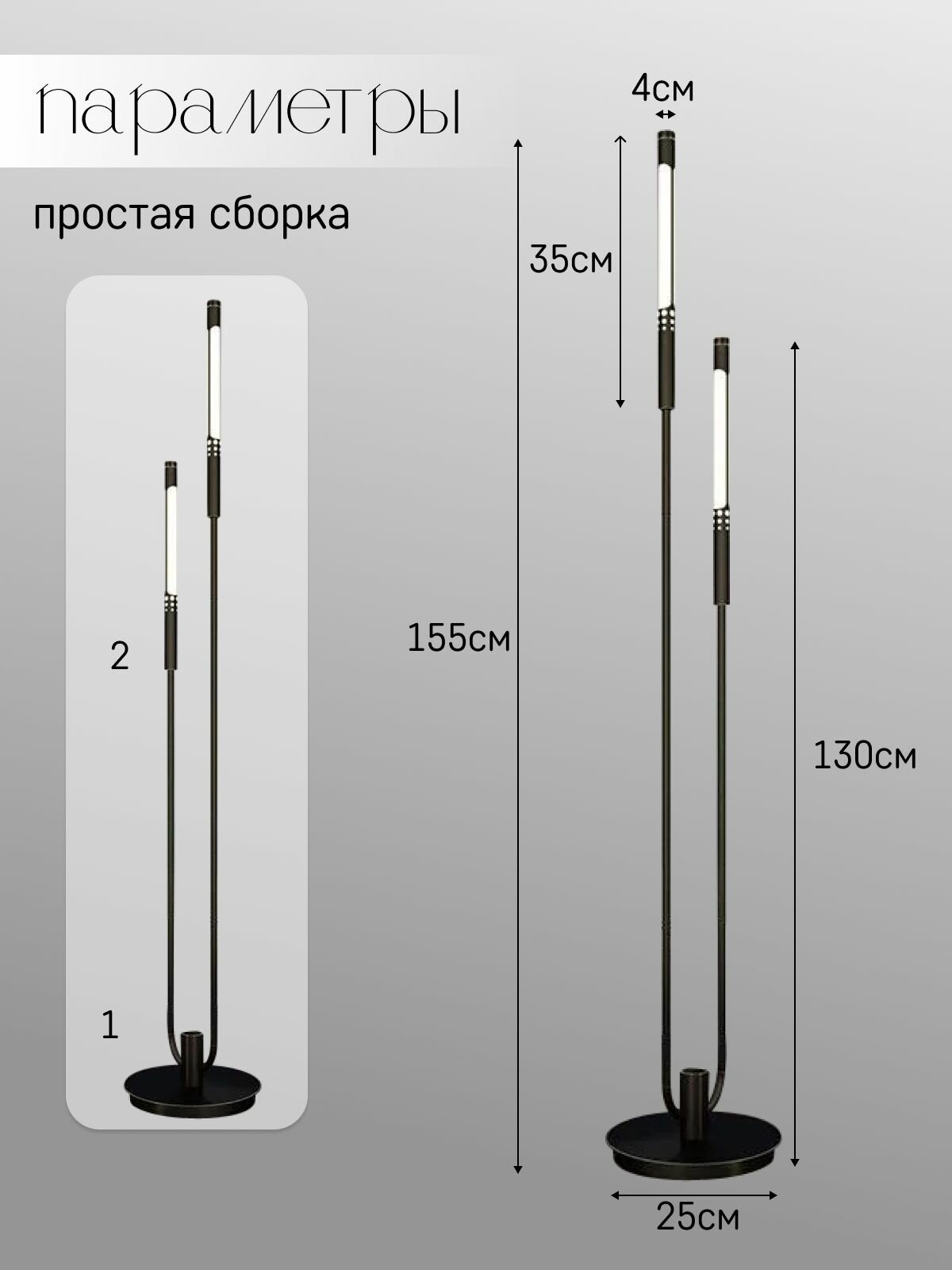 Торшер напольный ЭлисСвет светильник светодиодный с двумя лампами, черный 5865LF/1L BK интересное: