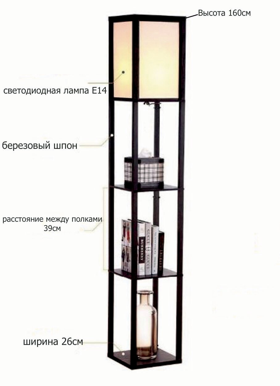 Торшер напольный прикроватный, светильник с полкой, ночник напольный венге, каменный шпон