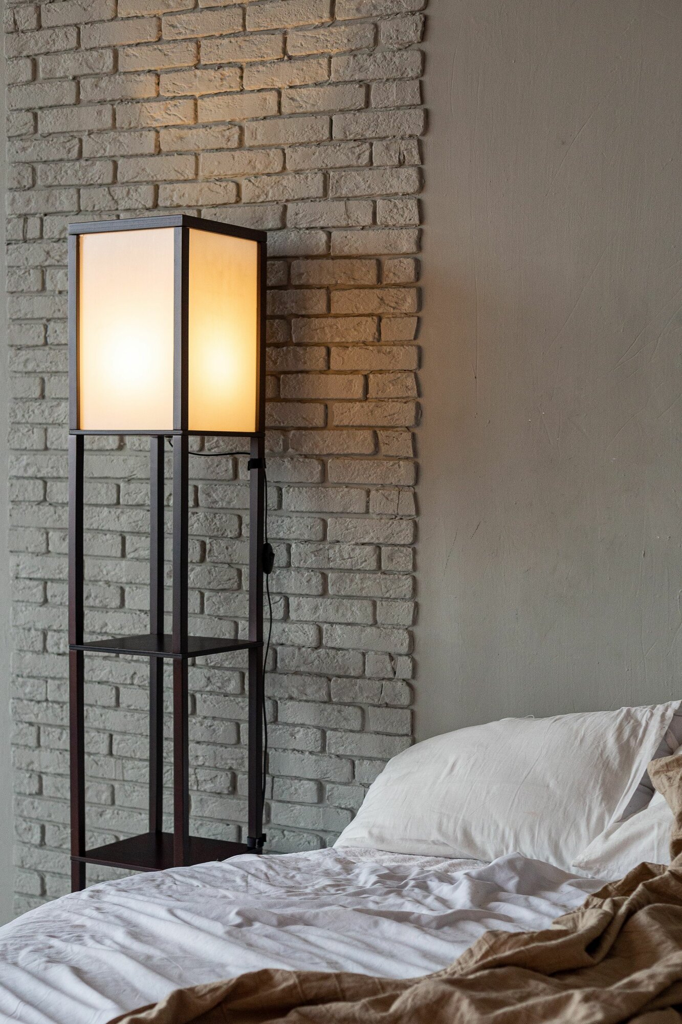 Напольный светильник с полкой, ночник прикроватный белый
