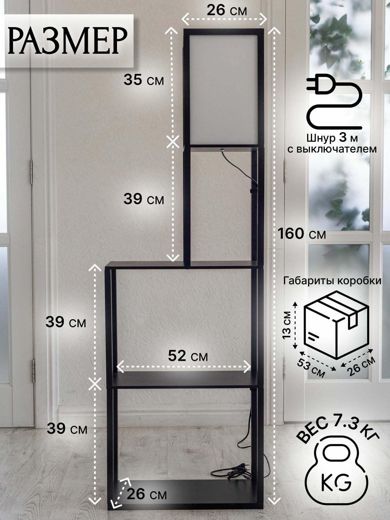 Торшер напольный, светильник высокий с полками черный Таер 3 интересное: