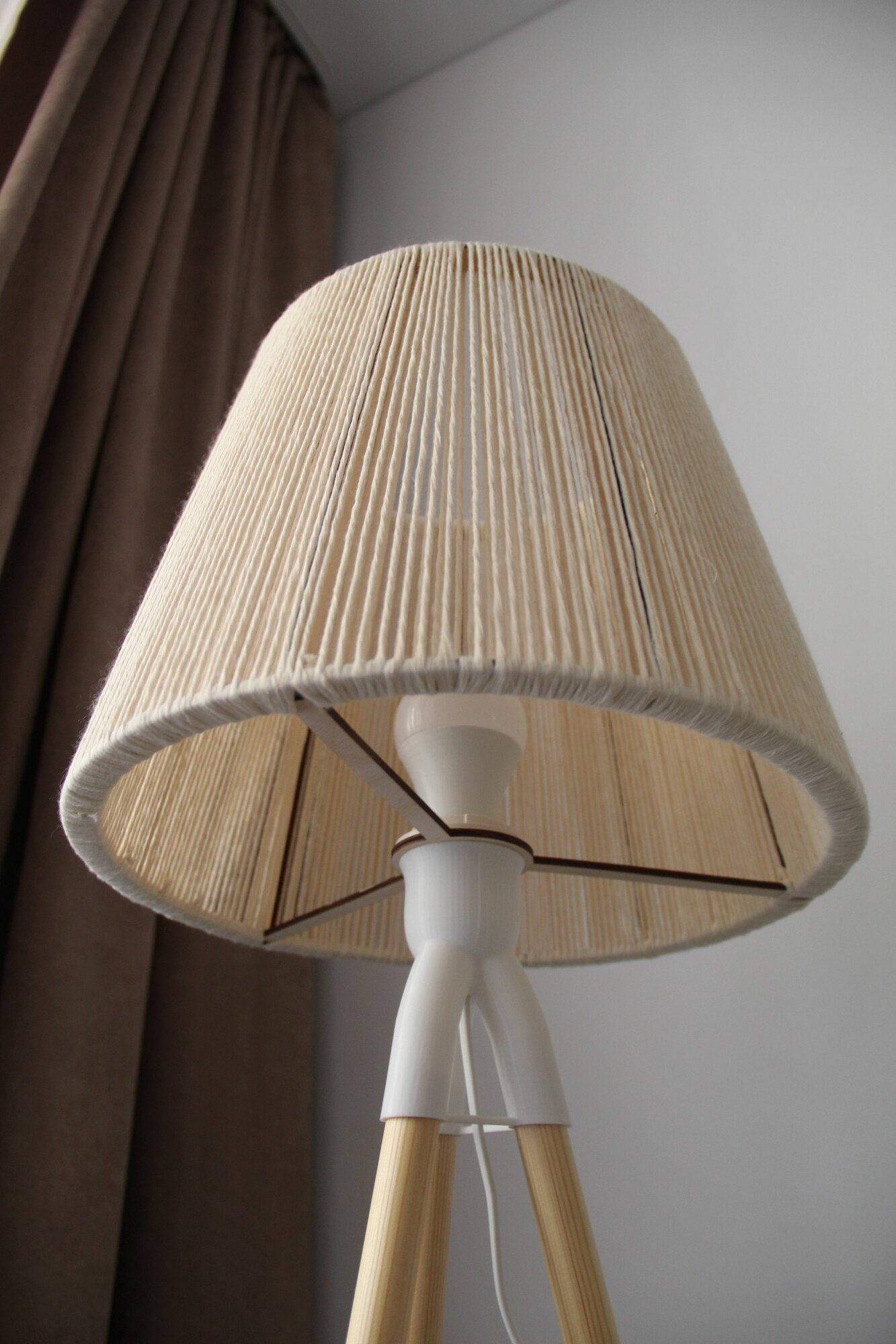 Светильник напольный торшер с абажуром плетеным хлопок , с полкой-столиком, Е27, 134 см интересное: