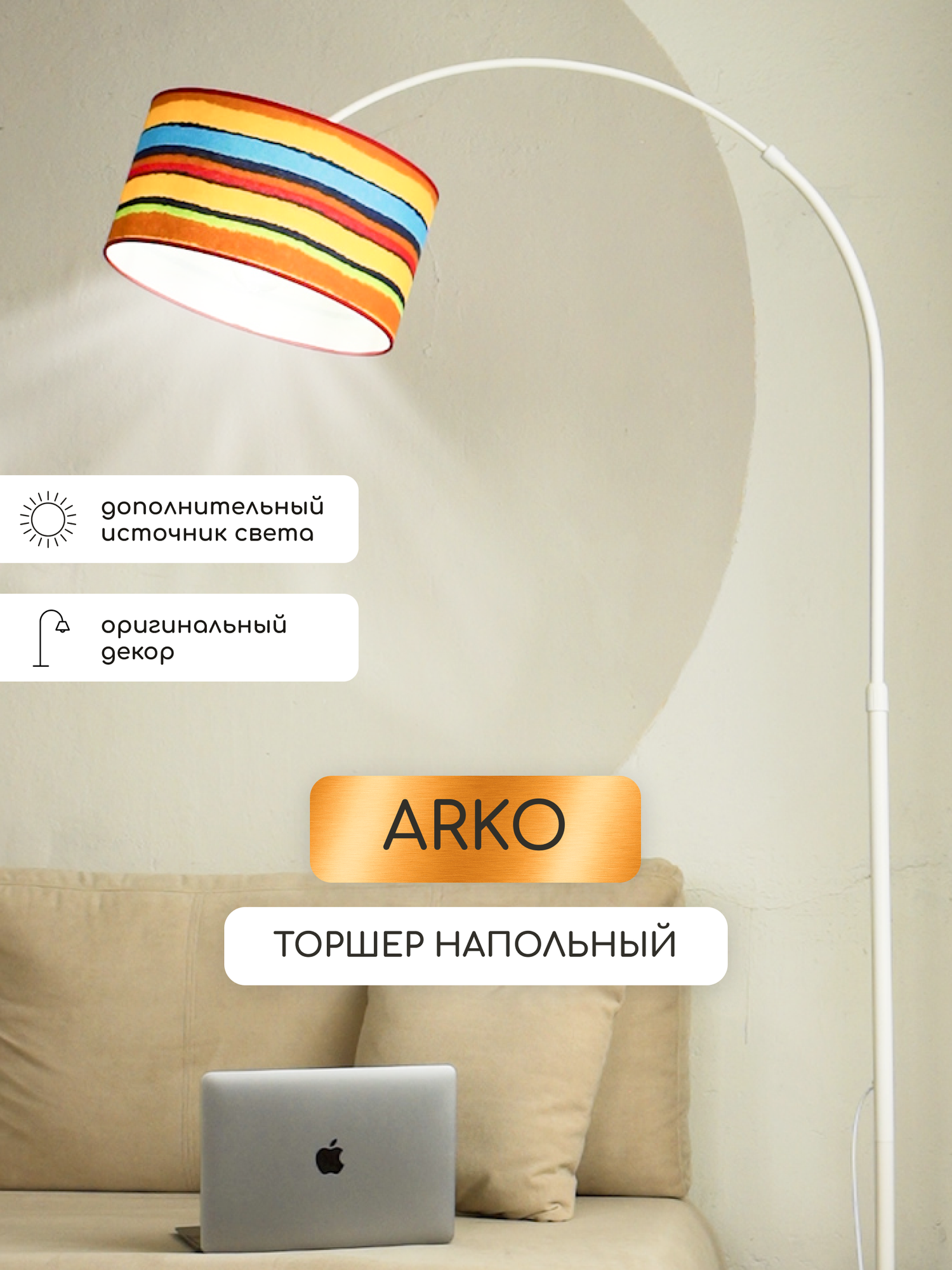 Торшер напольный Арко, E27, 50Вт, дневной белый цвет, IP20, мультиколор интересное: