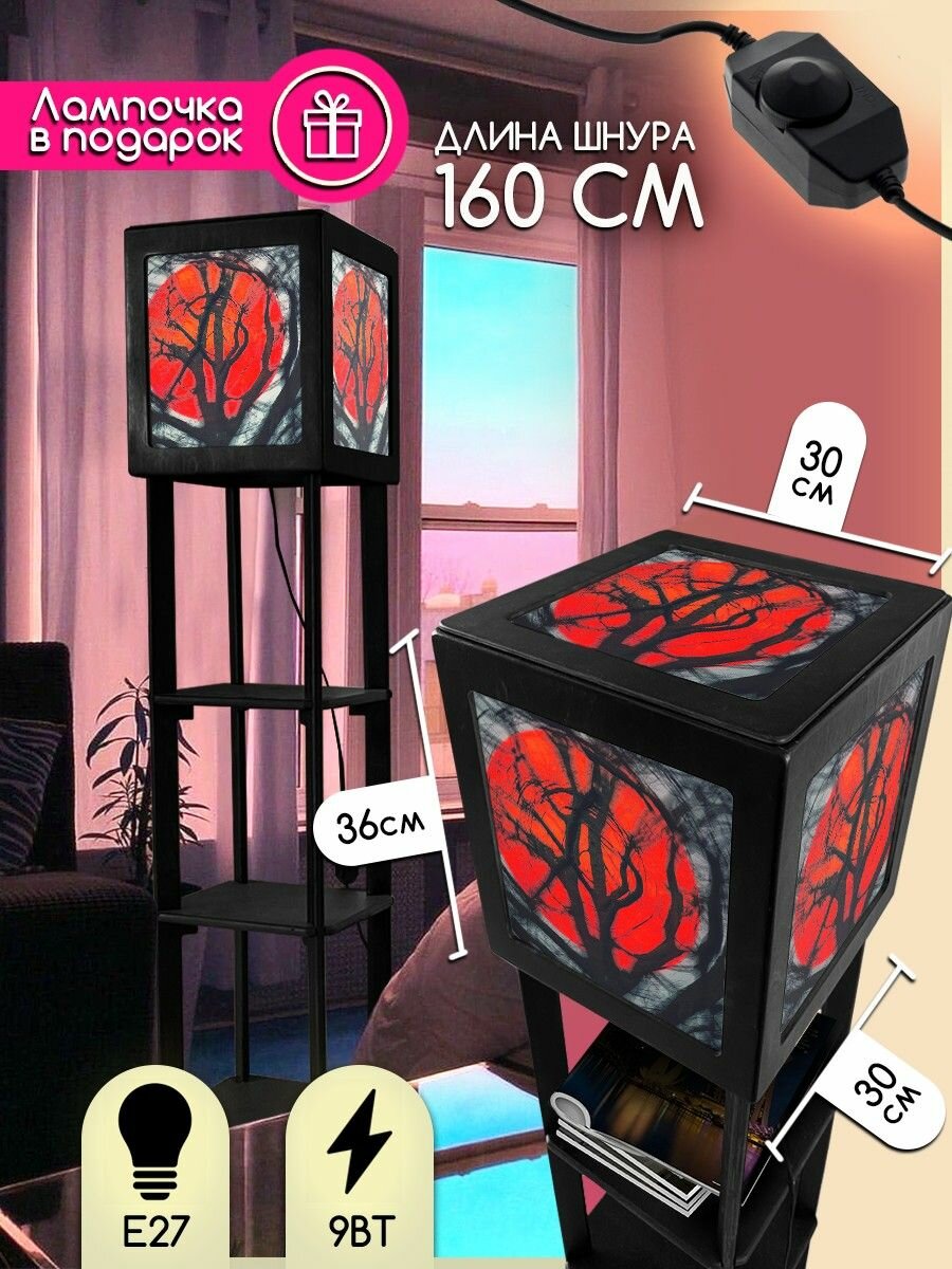 СохранитьНапольная лампа с полками квадратная, напольный светильник с принтом абстракция (красный, черный, луна, солнце) - 565 интересное: