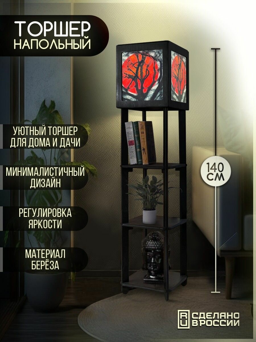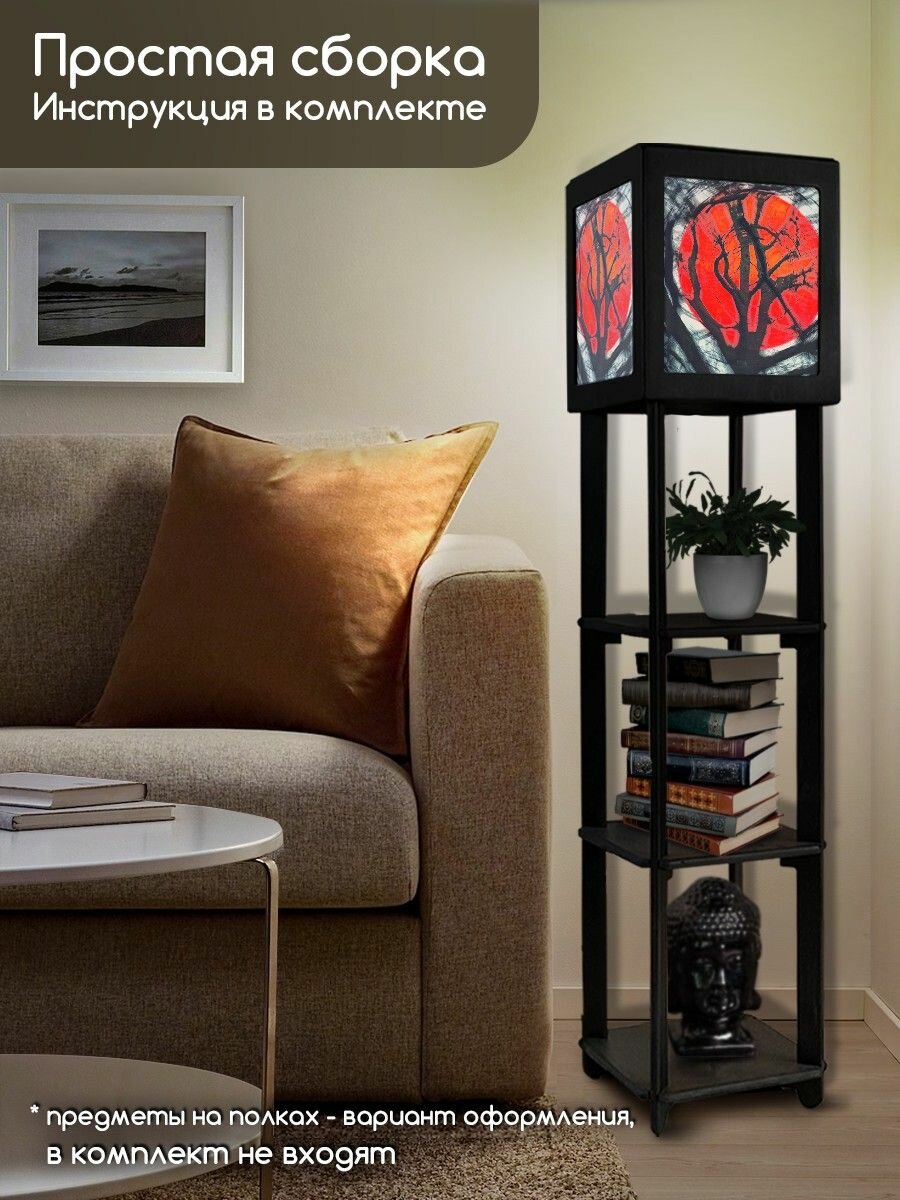 Купить Напольная лампа с полками квадратная, напольный светильник с принтом абстракция (красный, черный, луна, солнце) - 565