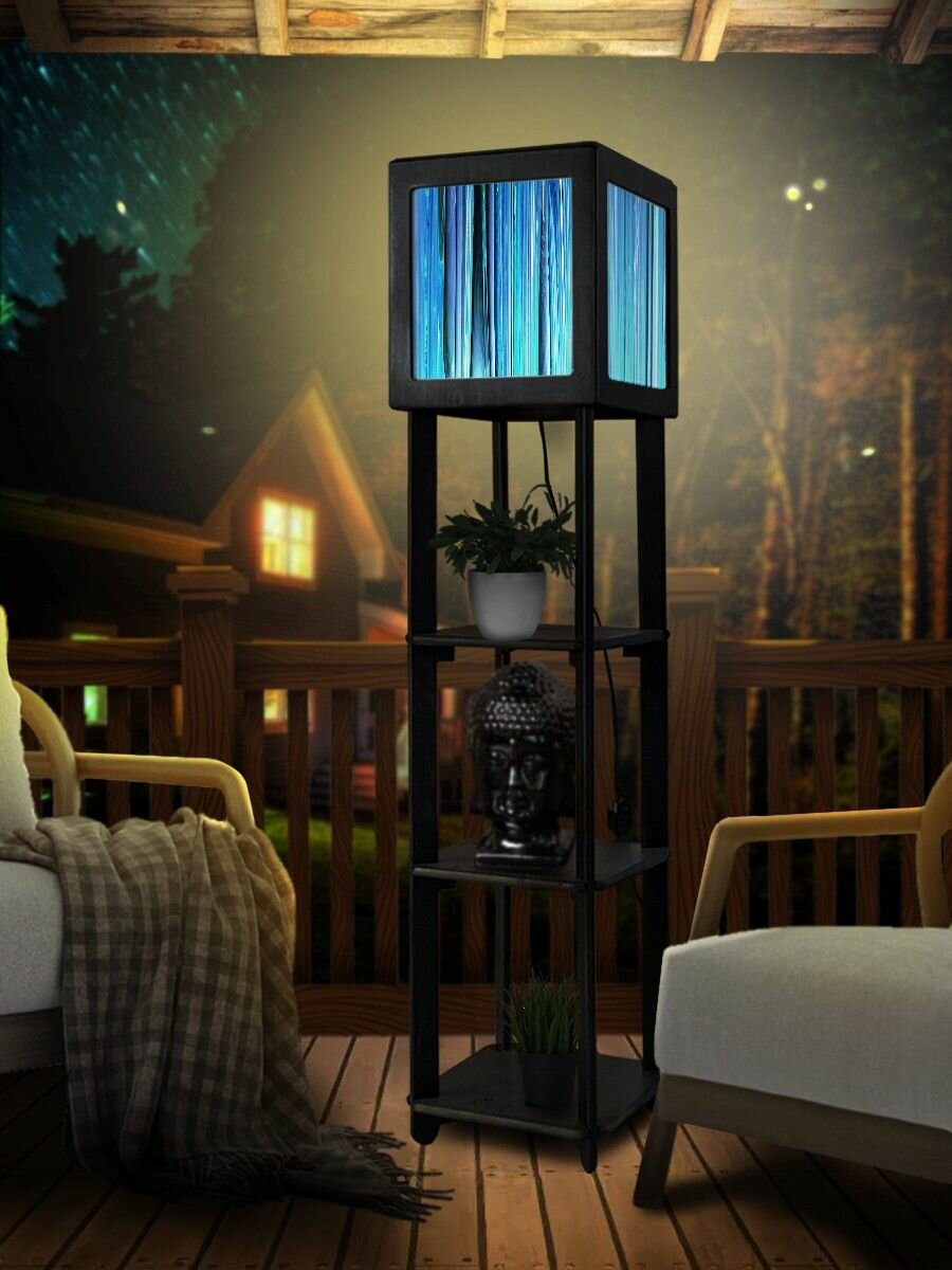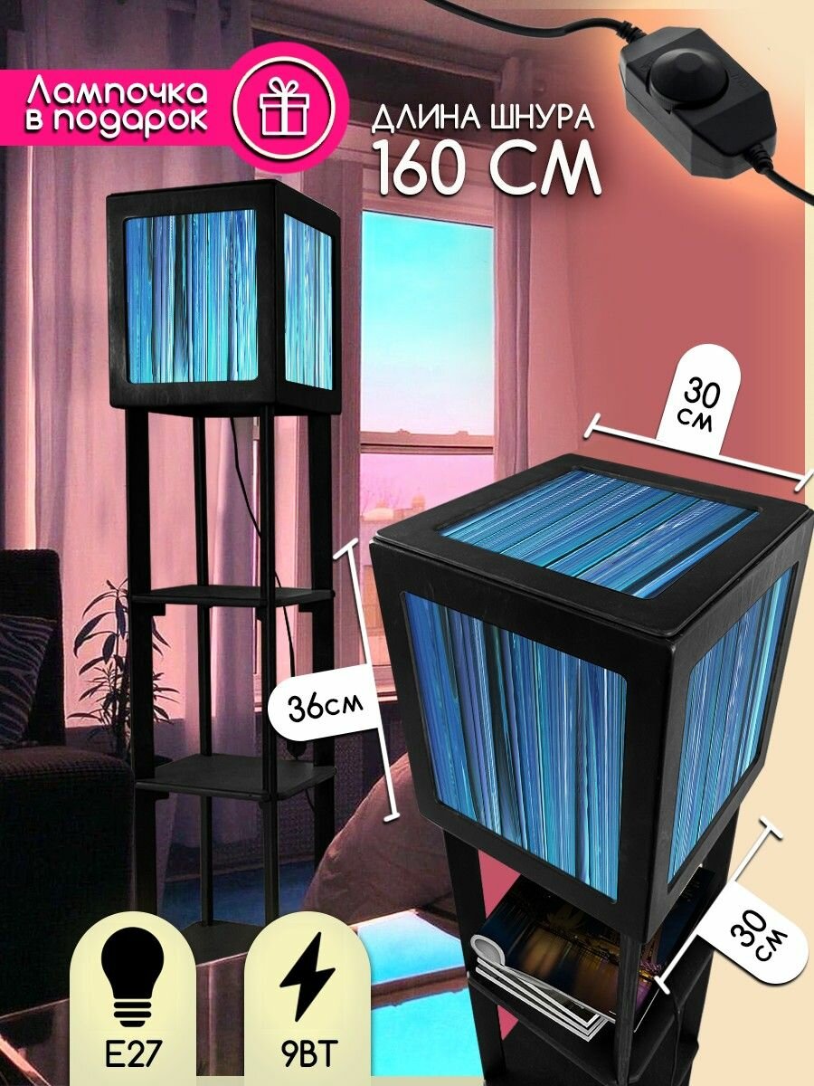 Купить Напольная лампа с полками квадратная, напольный светильник с принтом абстракция (синий, фигура, 3д) - 549