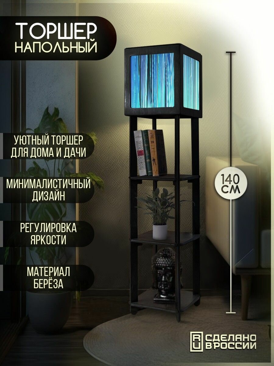 Напольная лампа с полками квадратная, напольный светильник с принтом абстракция (пейзаж, природа, птицы, море) - 540