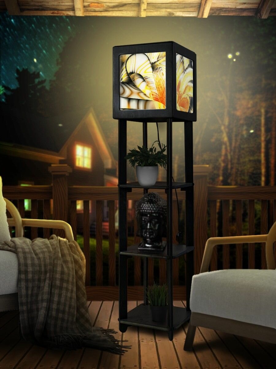 Напольная лампа с полками квадратная, напольный светильник с принтом абстракция (пакет) - 559