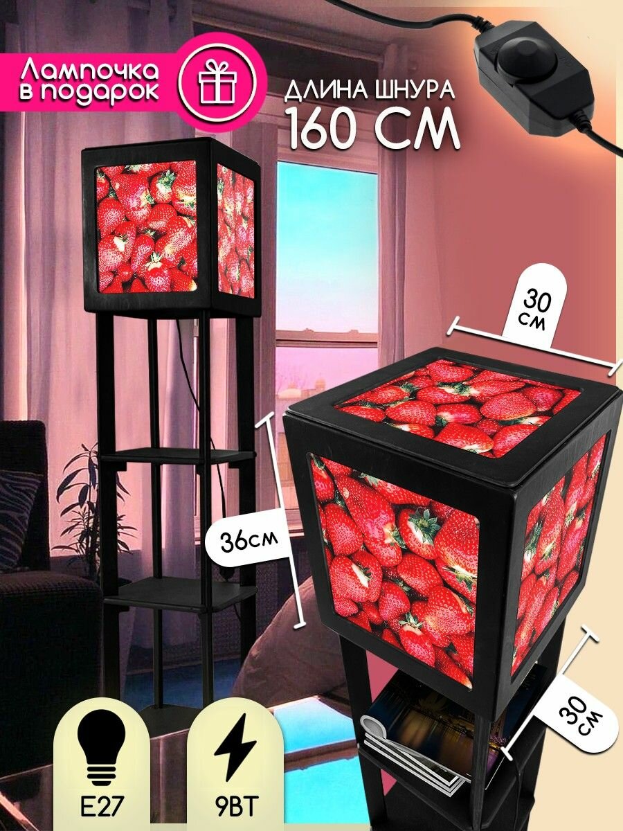 СохранитьНапольная лампа с полками квадратная, напольный светильник с принтом абстракция (еда, клубника, фрукты) - 558 интересное: