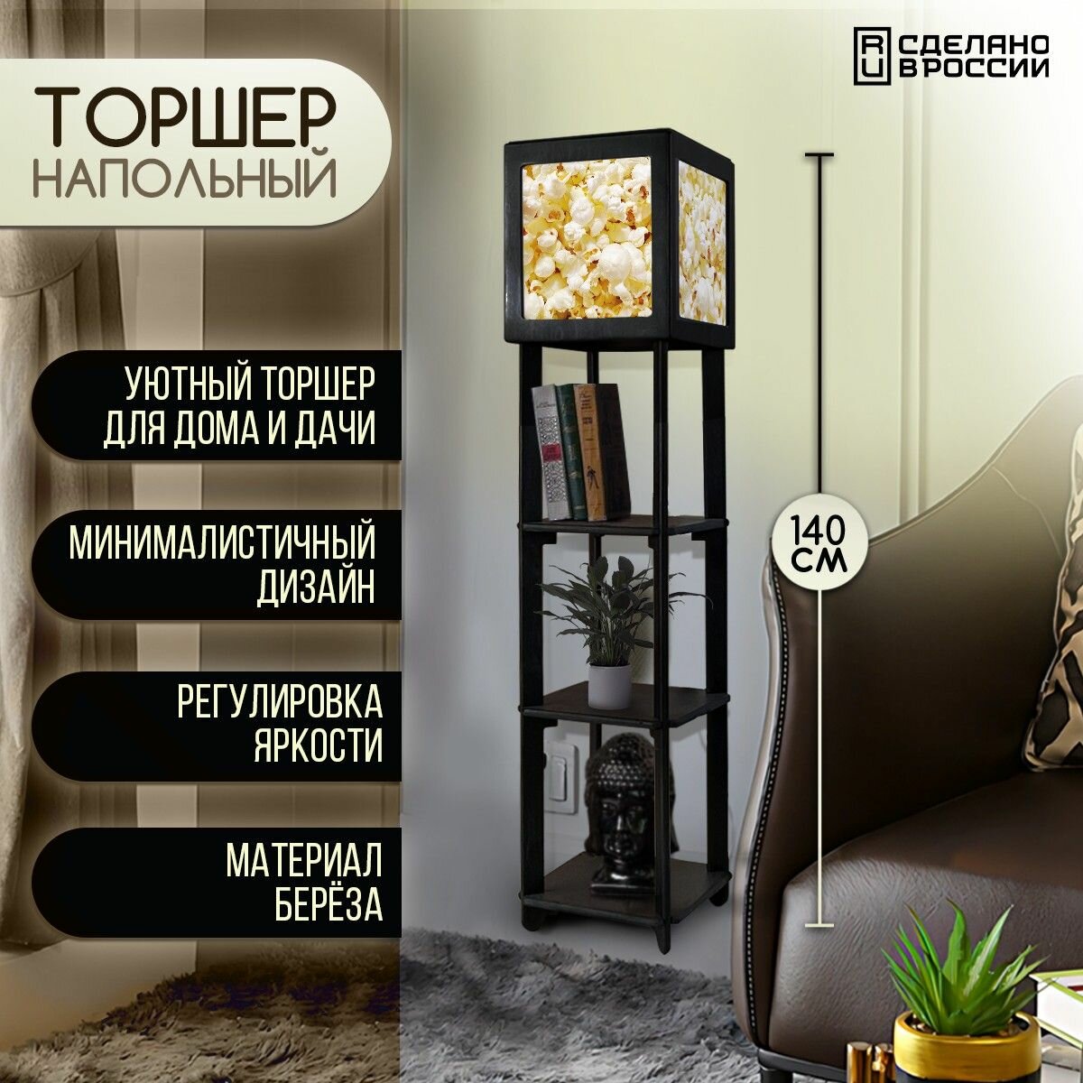 СохранитьНапольная лампа с полками квадратная, напольный светильник с принтом абстракция (еда, попкорн) - 555 интересное:
