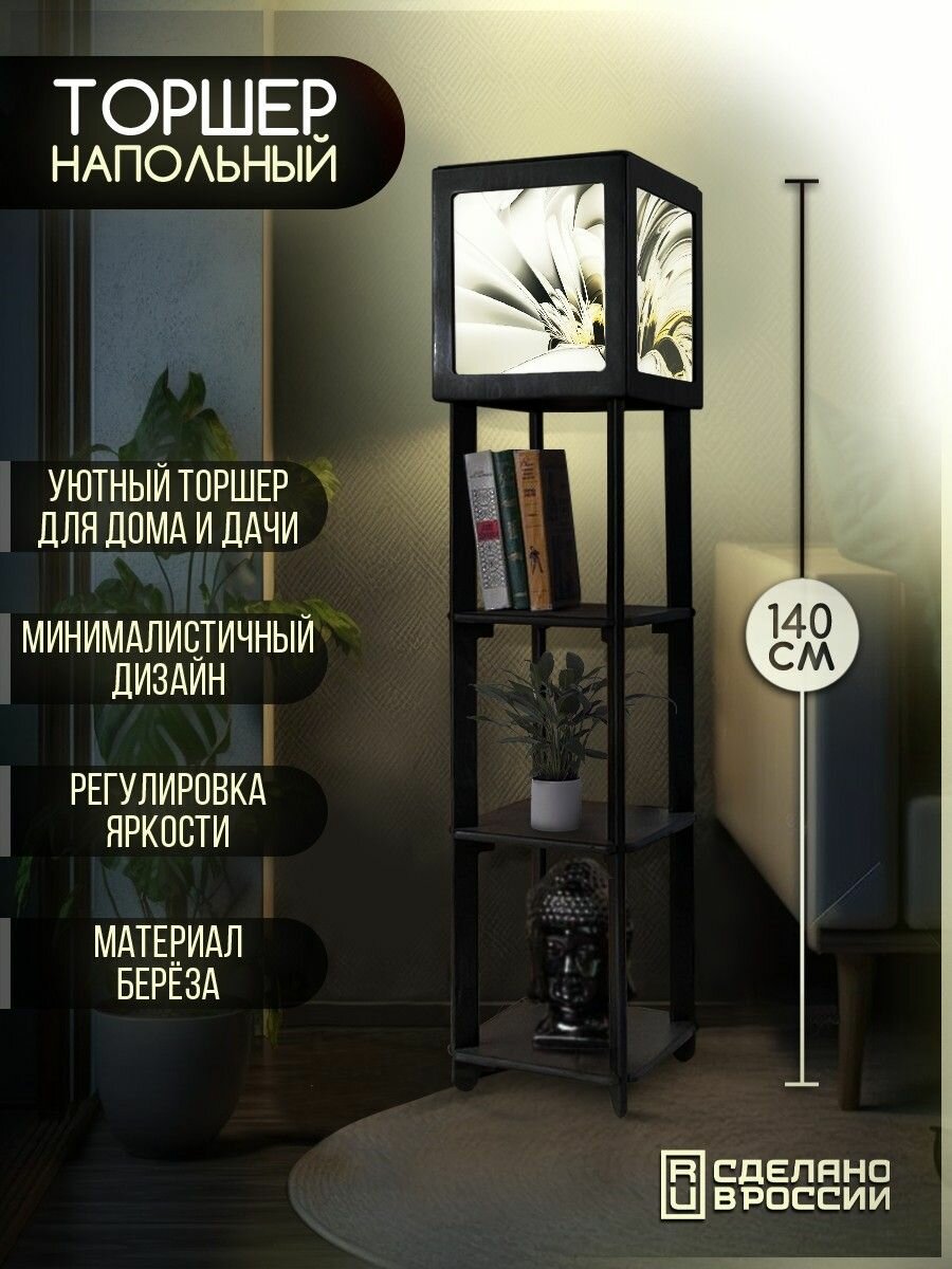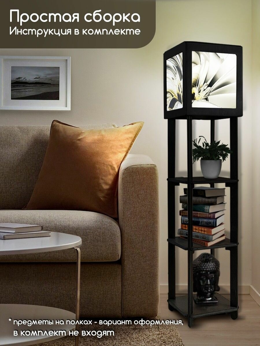 Напольная лампа с полками квадратная, напольный светильник с принтом абстракция (черный, стекло) - 553