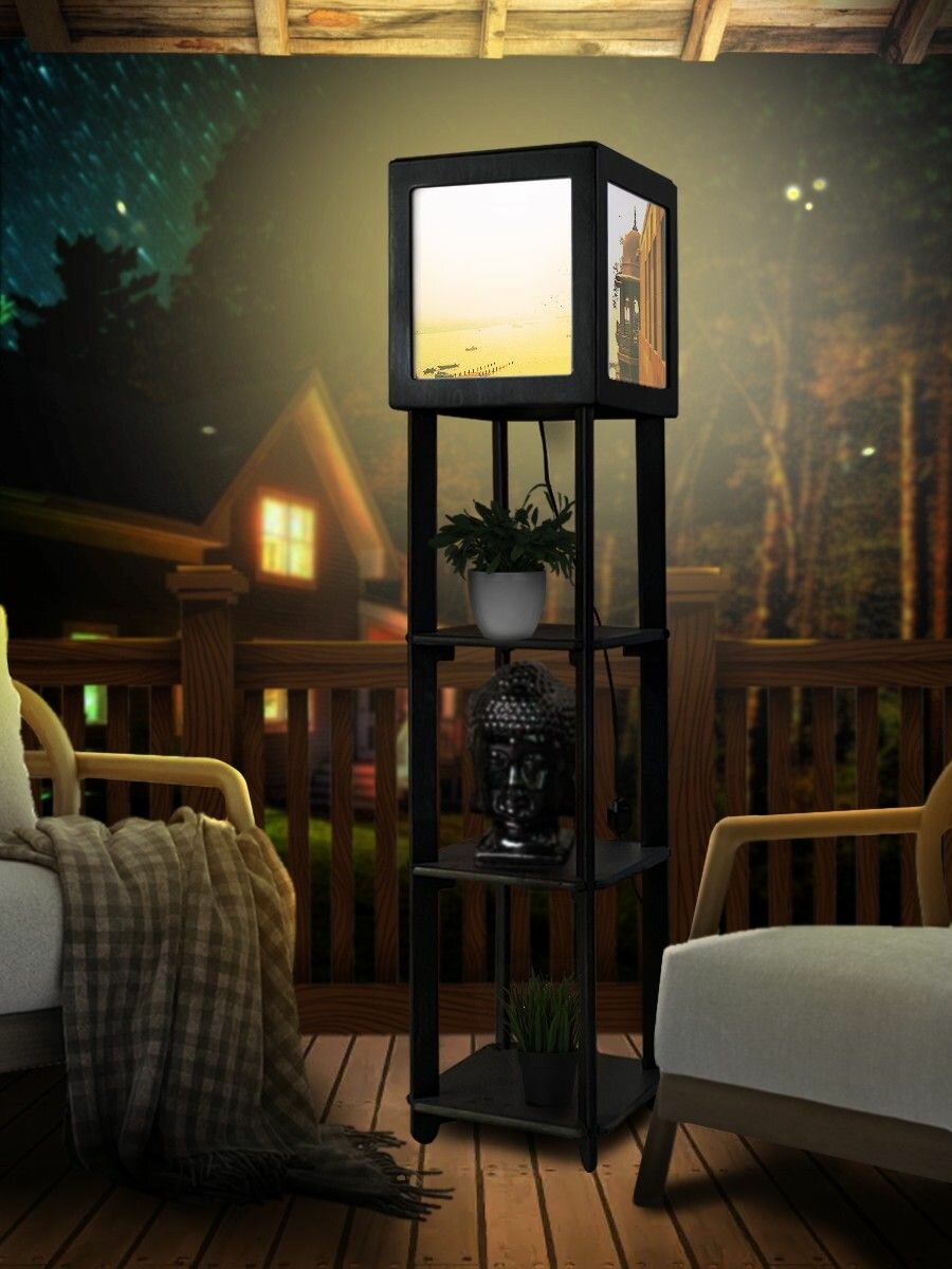 Купить Напольная лампа с полками квадратная, напольный светильник с принтом абстракция (пейзаж, природа, птицы, море) - 540