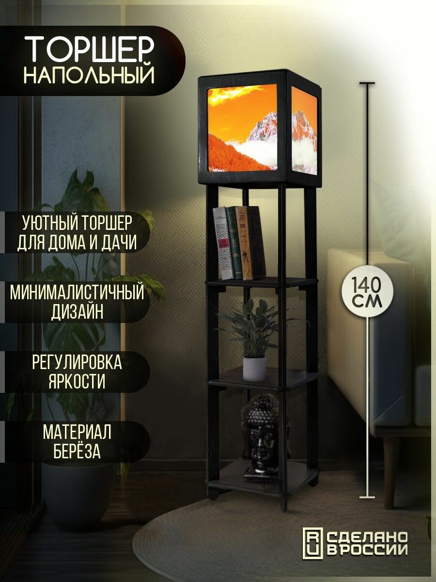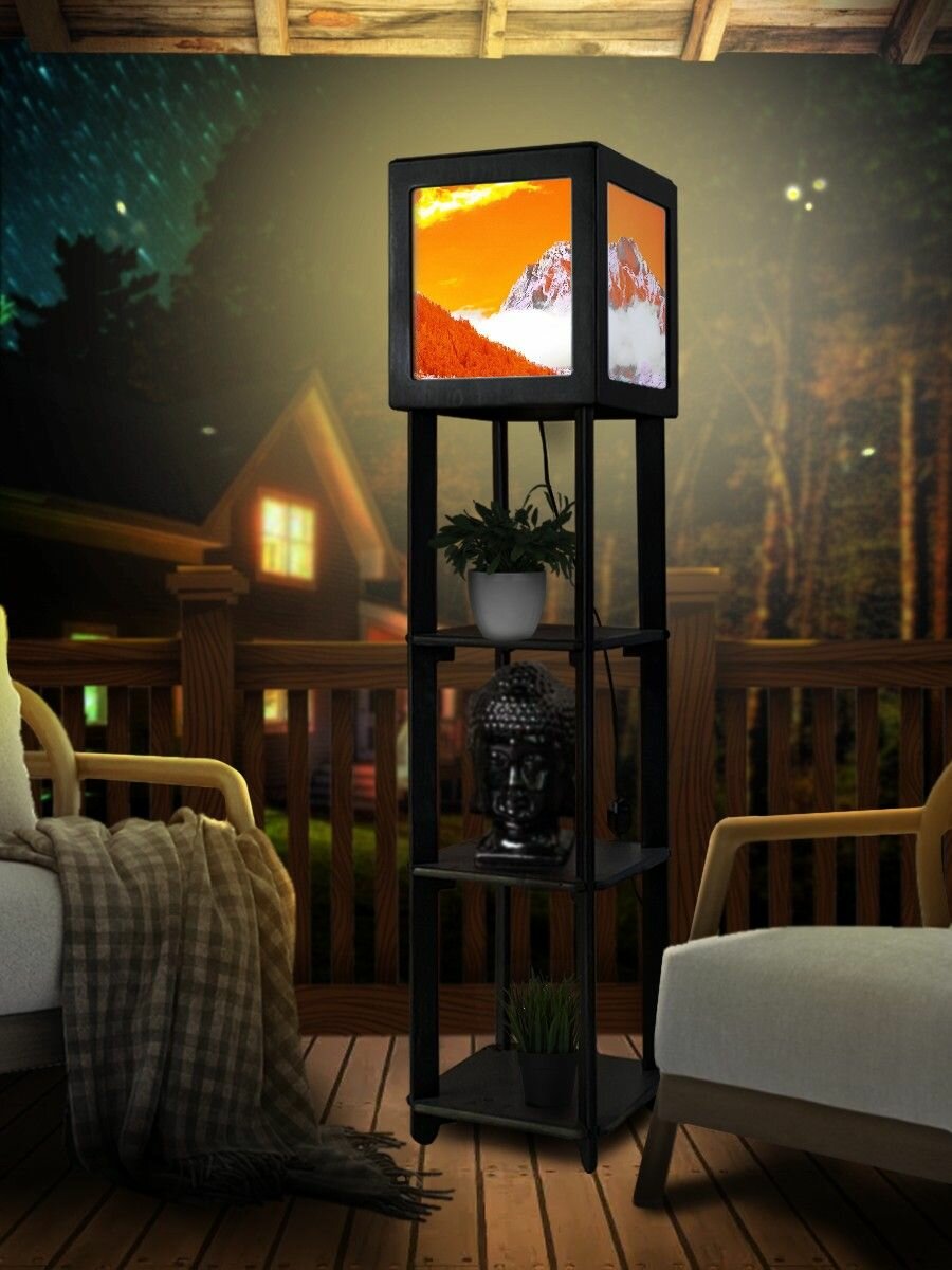 СохранитьНапольная лампа с полками квадратная, напольный светильник с принтом абстракция (горы, природа) - 560 интересное: