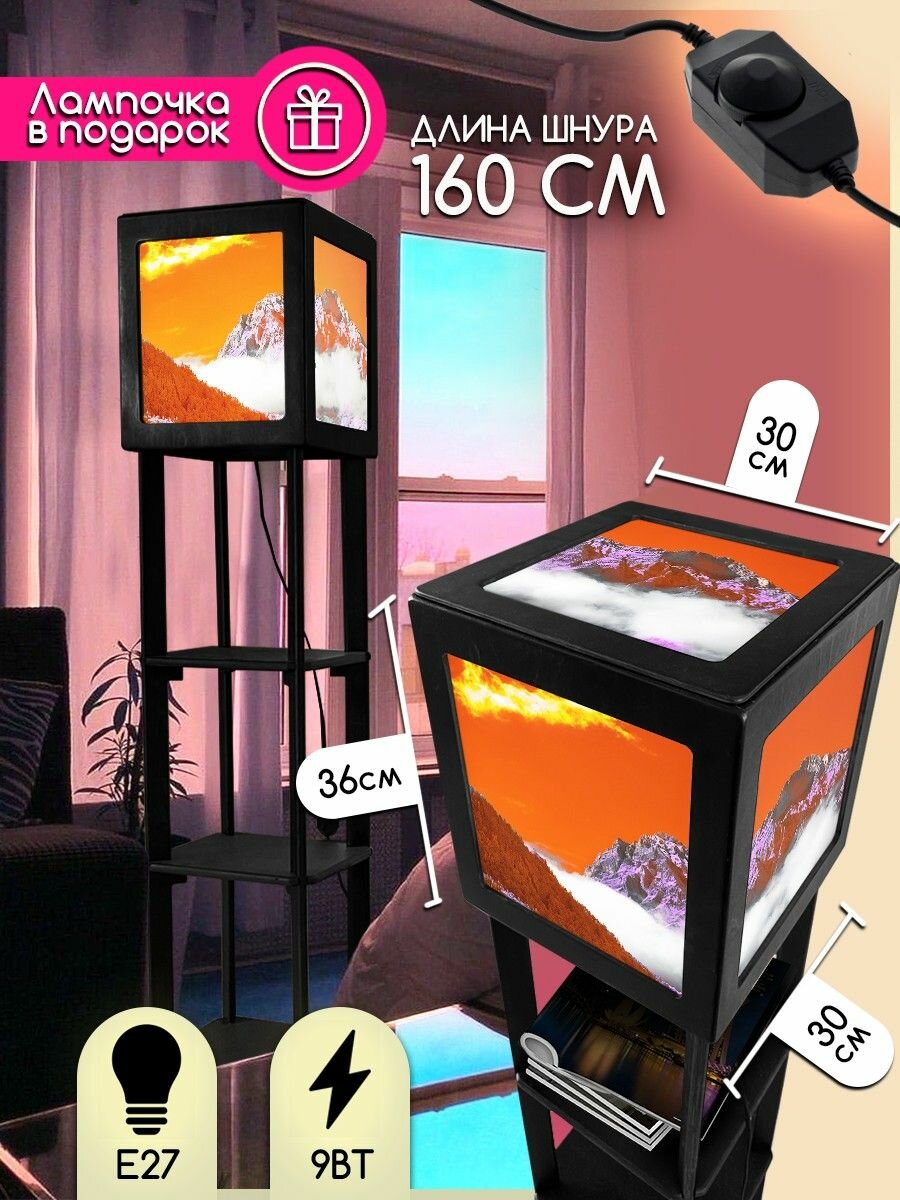 Купить Напольная лампа с полками квадратная, напольный светильник с принтом абстракция (горы, природа) - 560