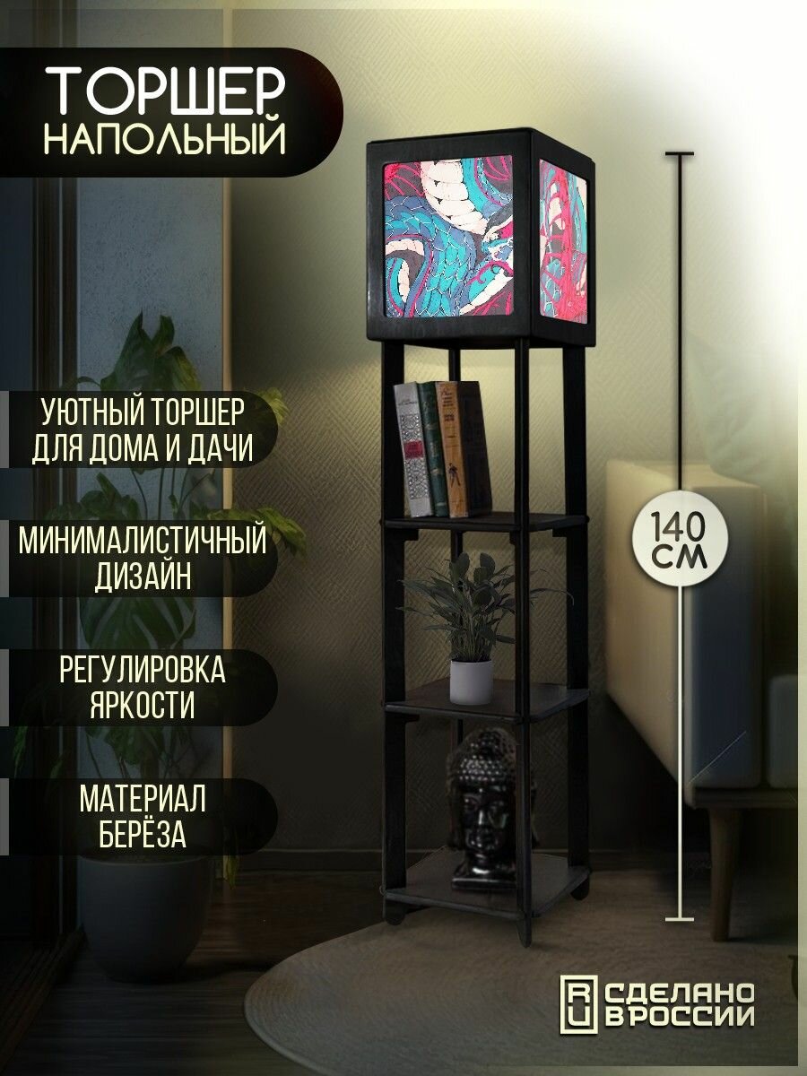 Купить Напольная лампа с полками квадратная, напольный светильник с принтом азия эстетика (япония, змея, дракон) - 2021