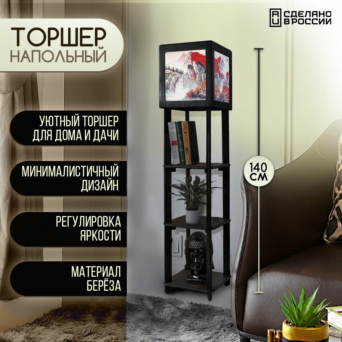 Купить Напольная лампа с полками квадратная, напольный светильник с принтом азия эстетика (япония, пейзаж, горы, водопад) - 2023