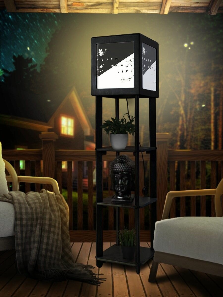 Купить Напольная лампа с полками квадратная, напольный светильник с принтом азия эстетика (сакура, цветы, жизнь и смерть, минимализм) - 2017