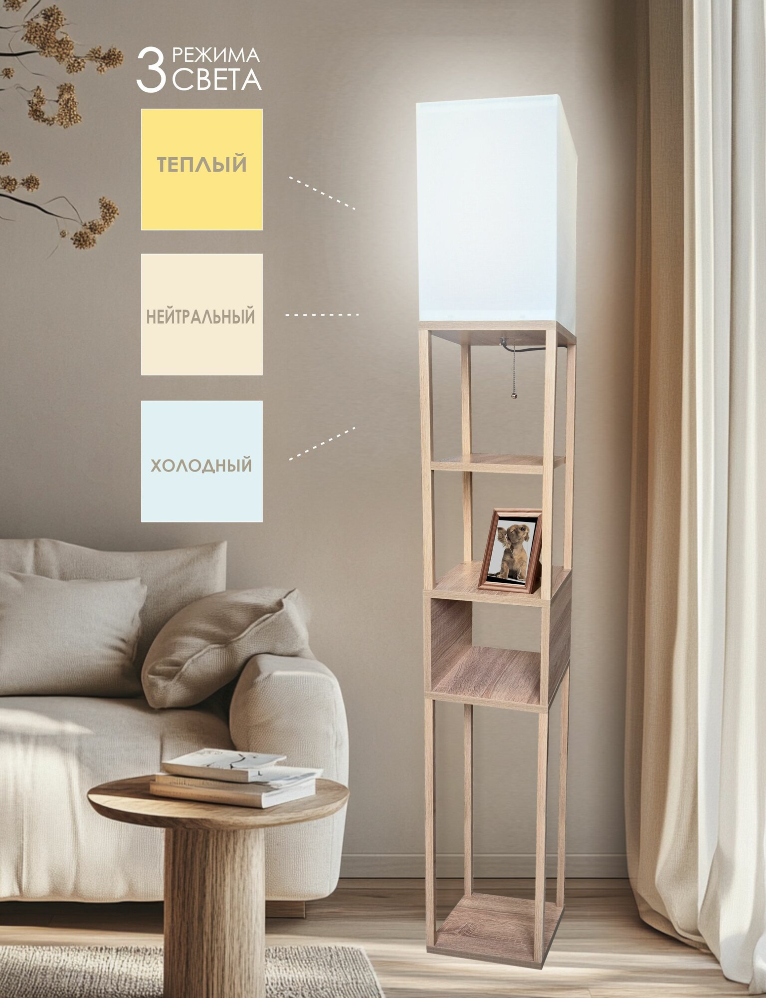 Торшер напольный с полкой цвет дуб сонома интересное: