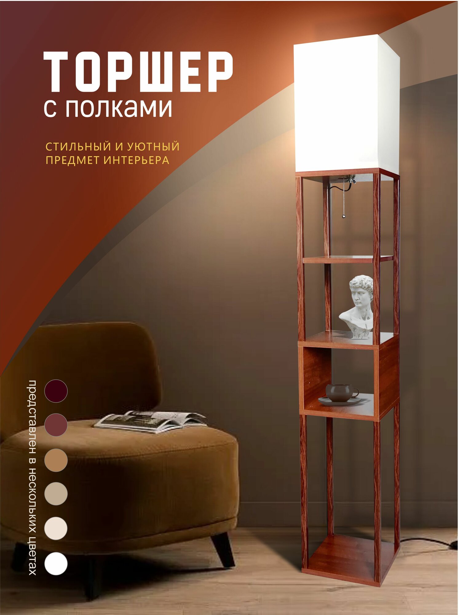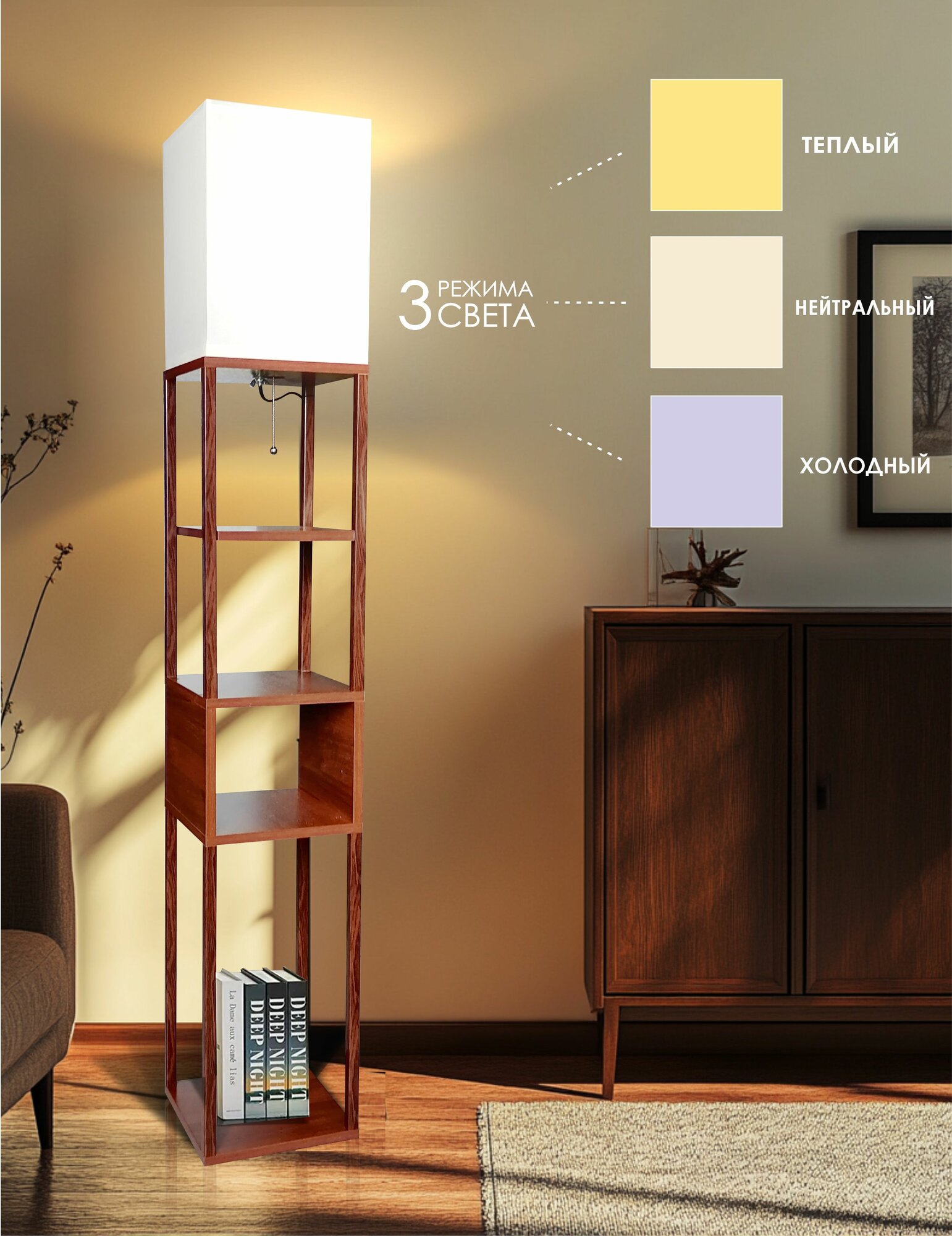 Торшер напольный светильник цвет орех донской с полками интересное: