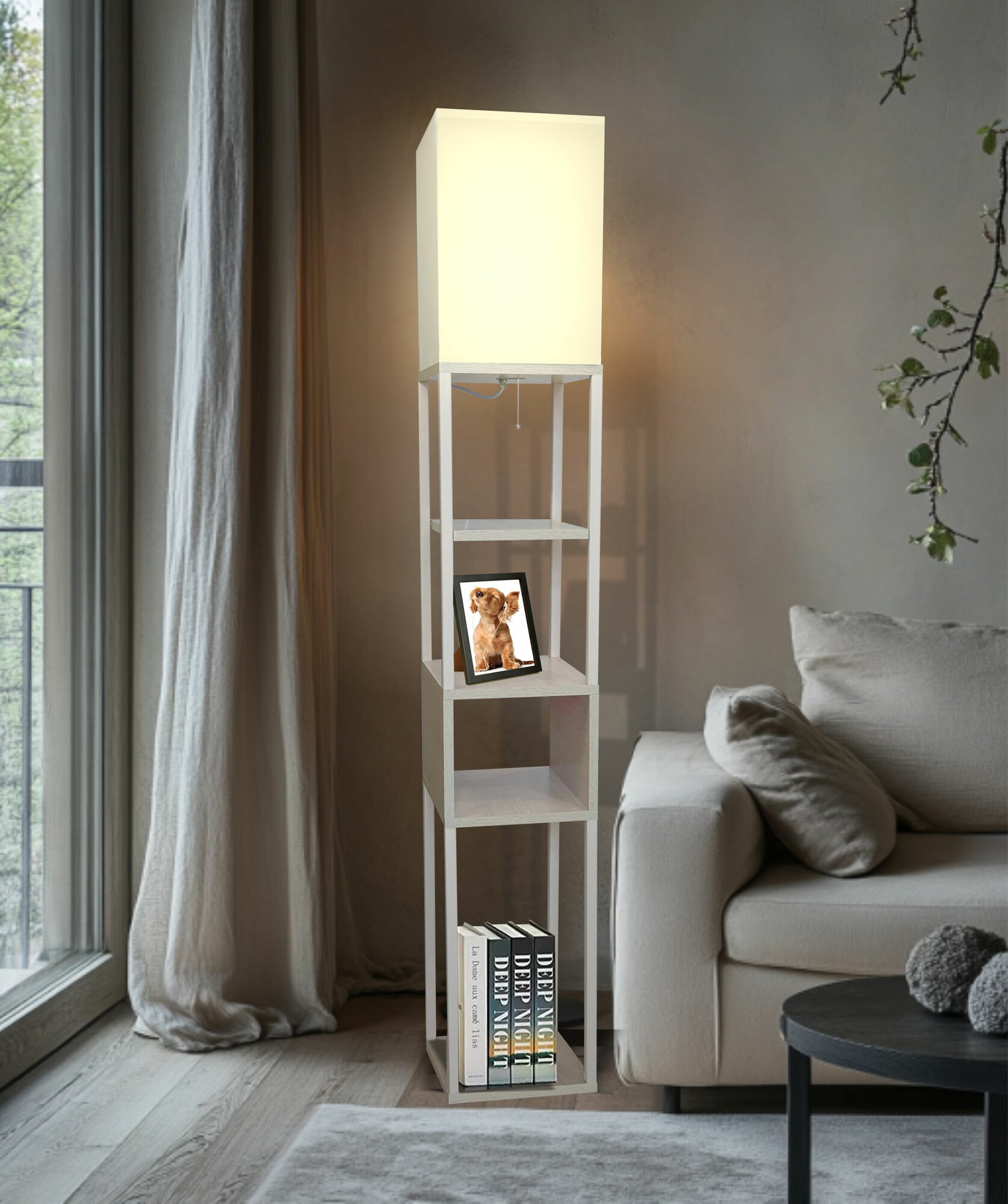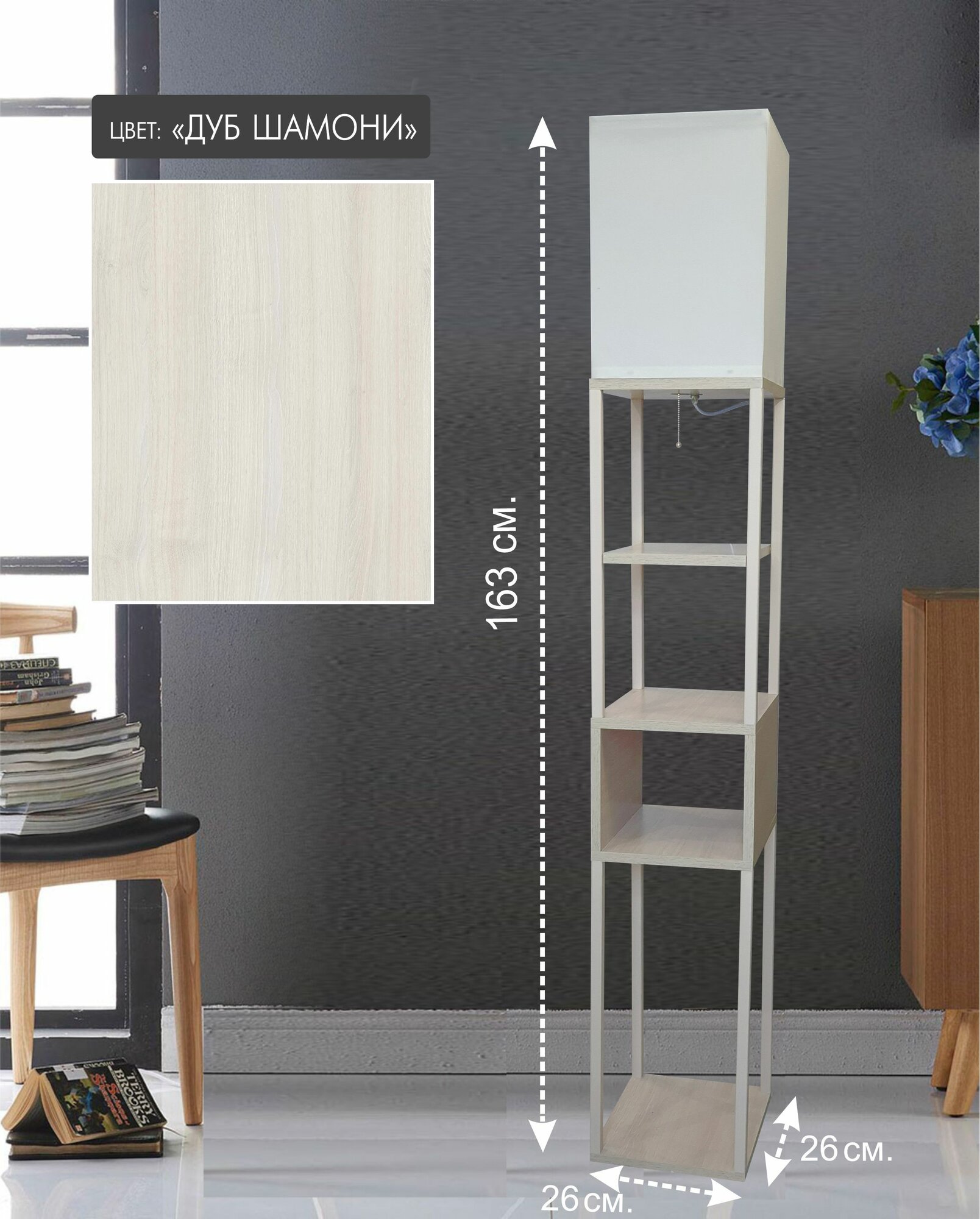 Торшер напольный с полками цвет дуб вотан
