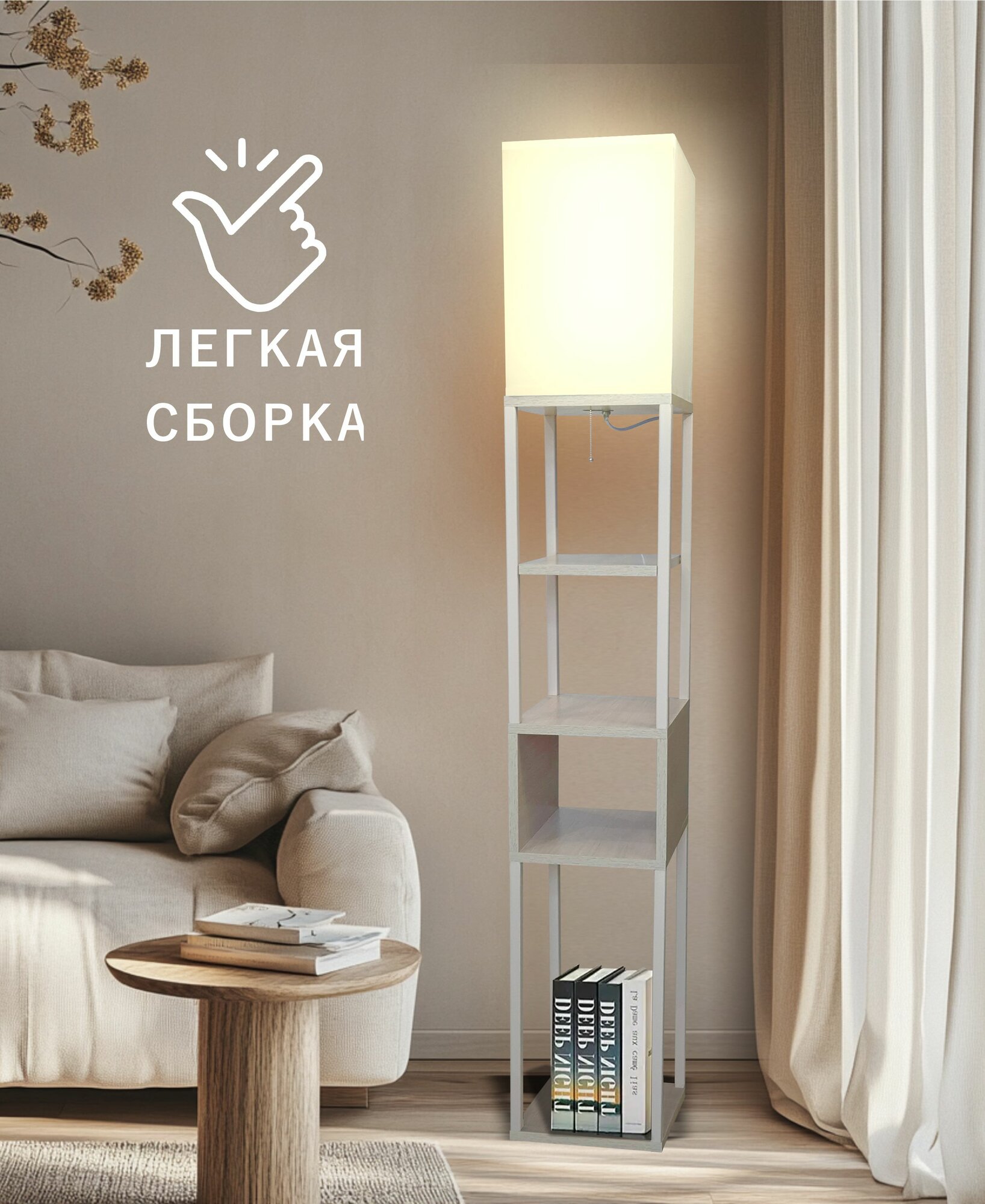 Торшер напольный с полкой цвет дуб сонома