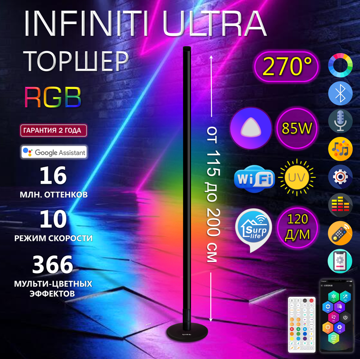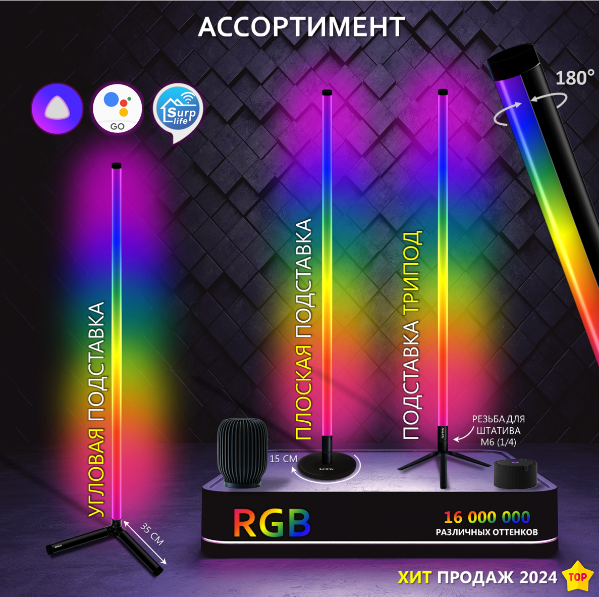 СохранитьТоршер RGB Wi-Fi ULTRA (Алиса, Google), лампа RGB, светильник RGB 115 см, (подставка плоская) пульт и bluetooth интересное: