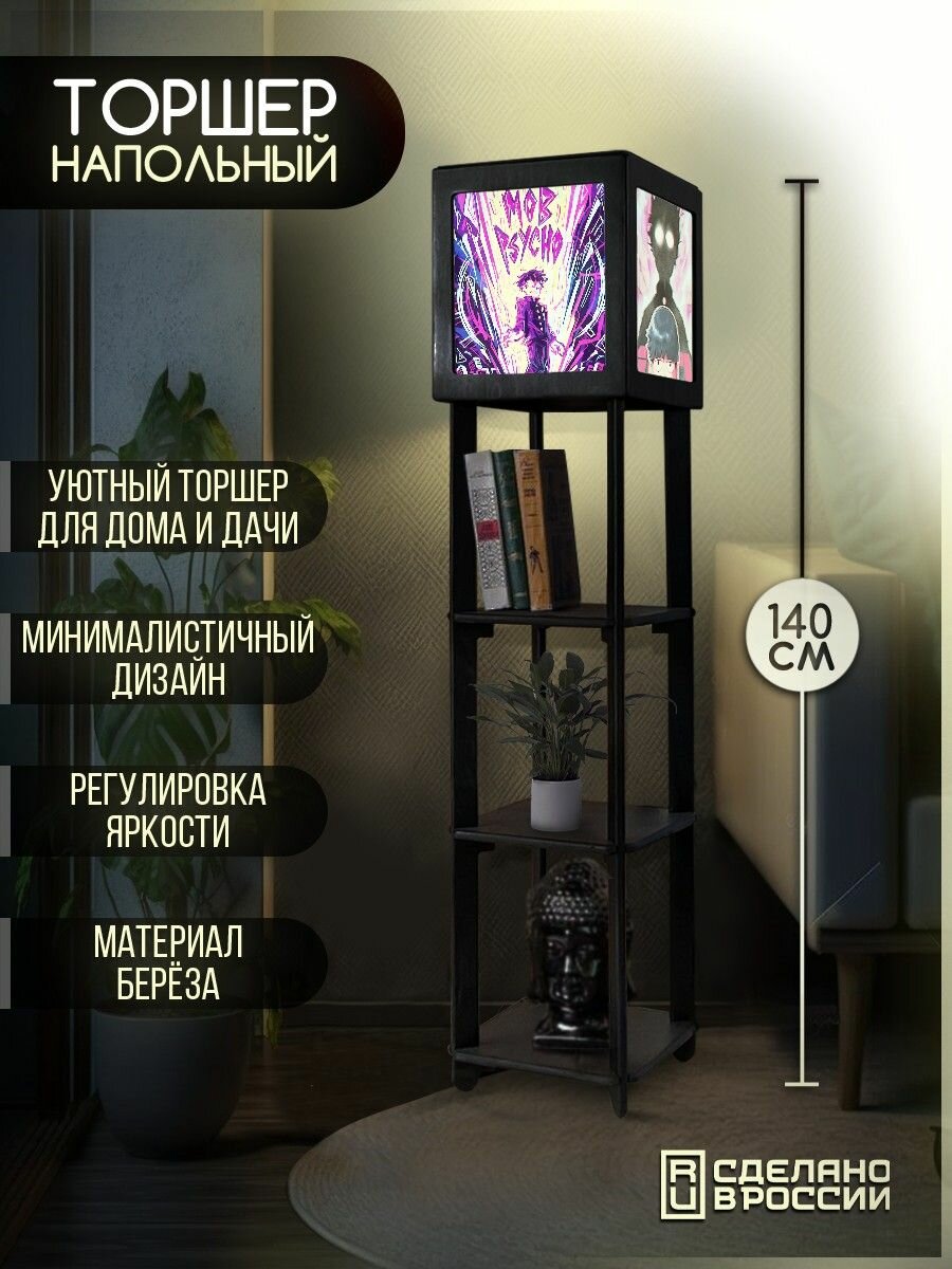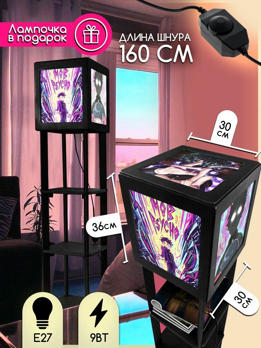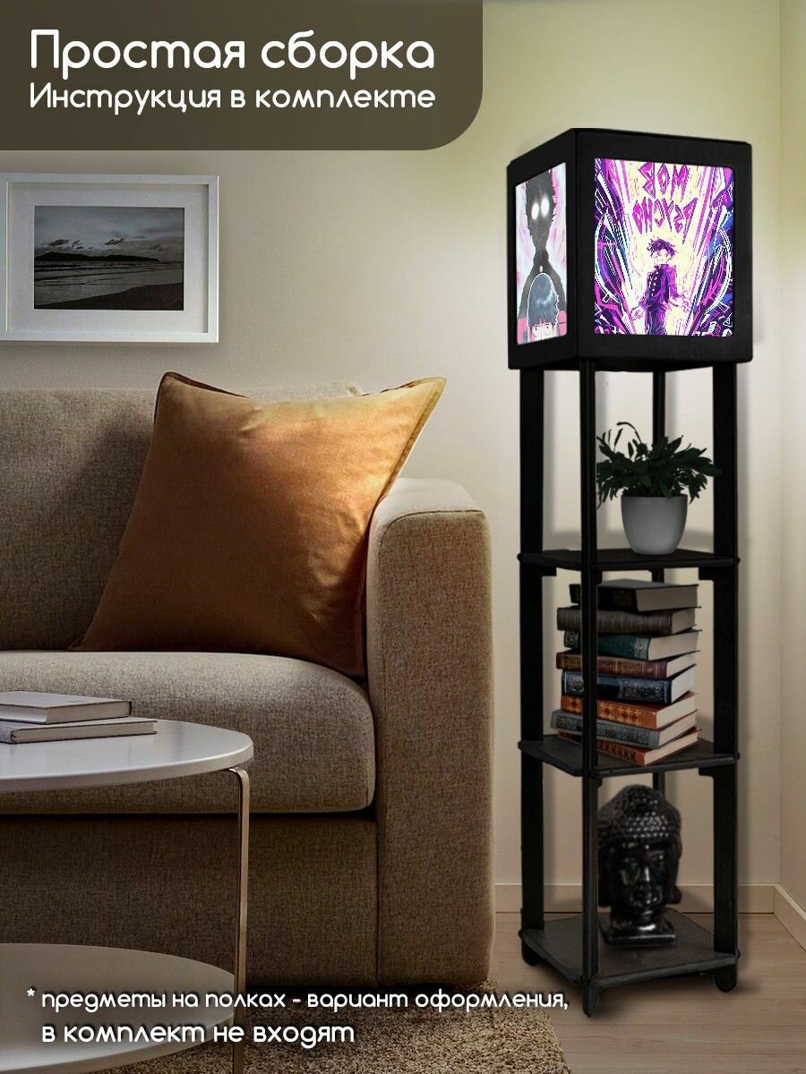 Напольная лампа с полками квадратная, напольный светильник с принтом Аниме Моб Психо Mob Psycho 100 - 3026 интересное: