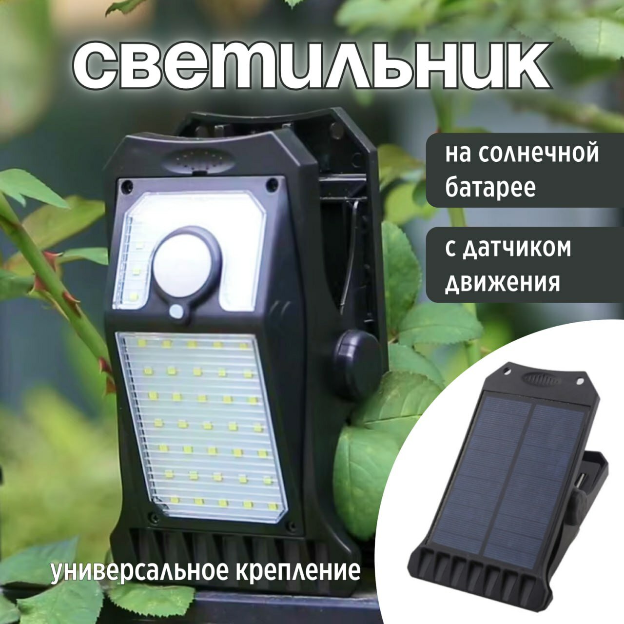 Фонарь на солнечной батарее с датчиком движения, на прищепке интересное: