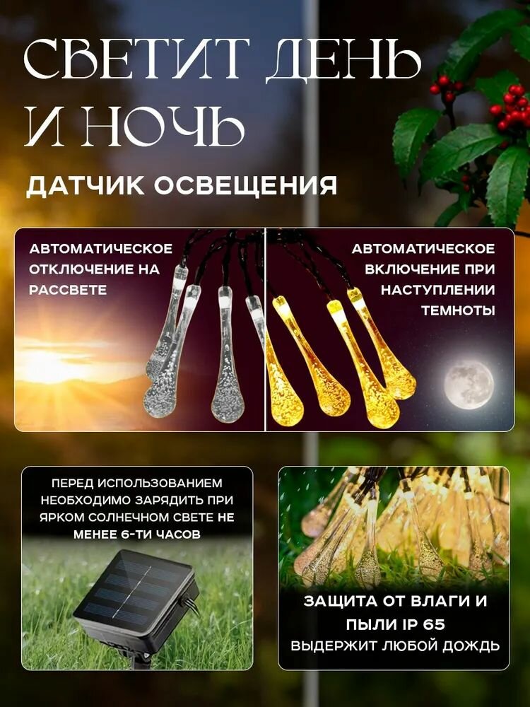 Купить Уличный светильник садовая гирлянда уличная для дачи на солнечной батарее Капли 10 м