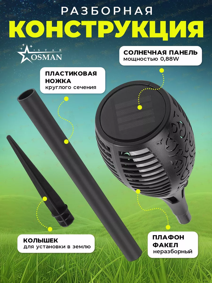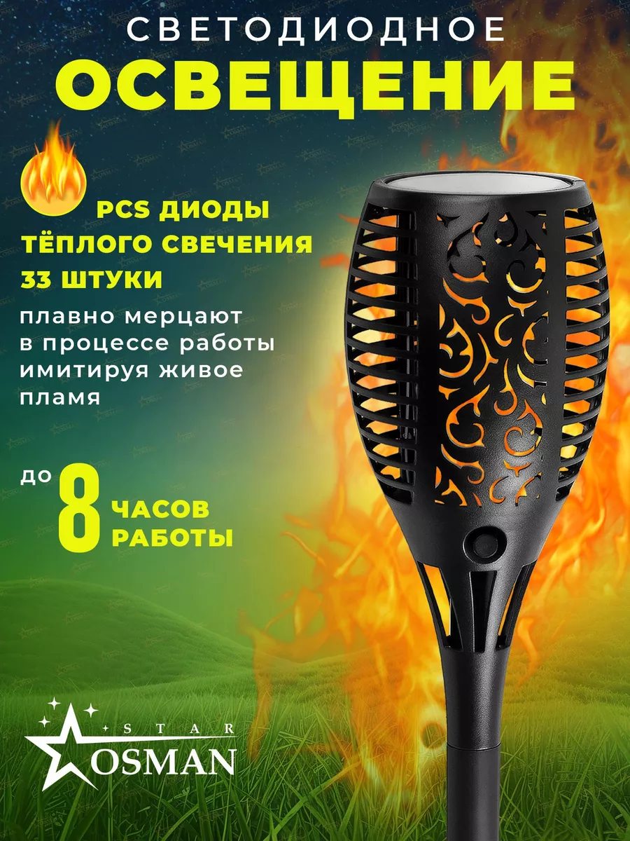 Встраиваемый садовый светильник на солнечной батарее с имитацией пламени, 1 штука интересное: