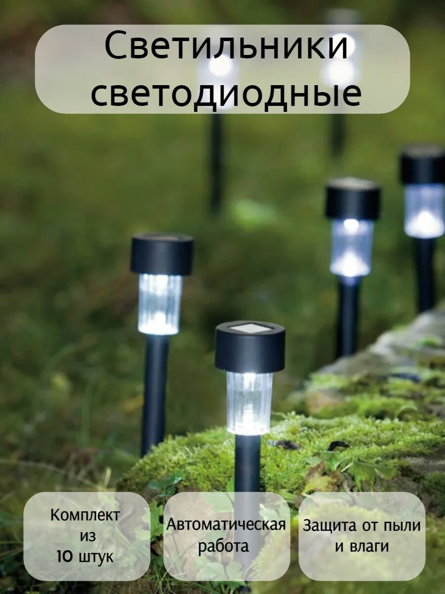 Светильник садовый на солнечных батареях, черный ,10 шт интересное: