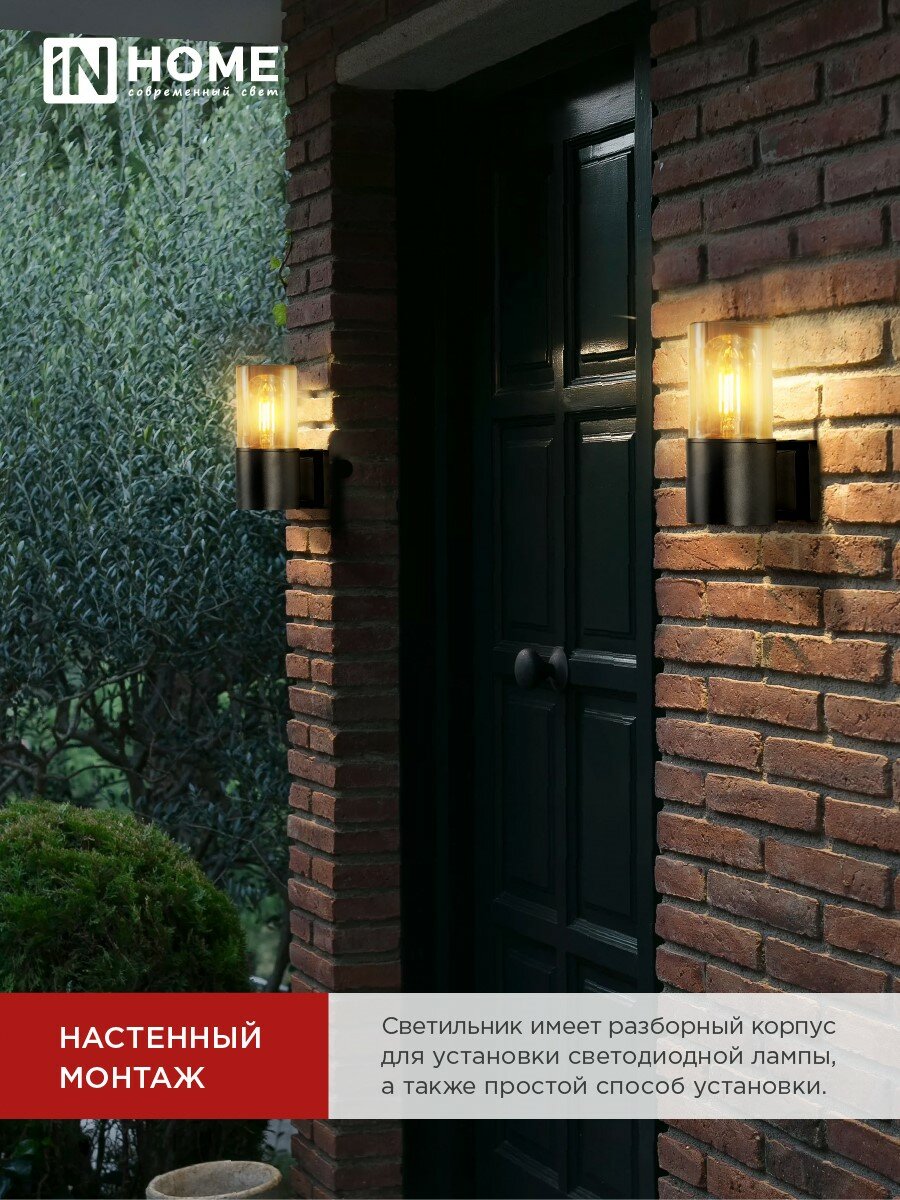 Светильник уличный настенный фасадный архитектурный НБУ AMBER-1хA60-BL алюм под 1хA60 E27 черный IP54 IN HOME интересное: