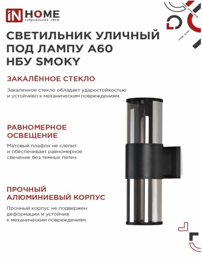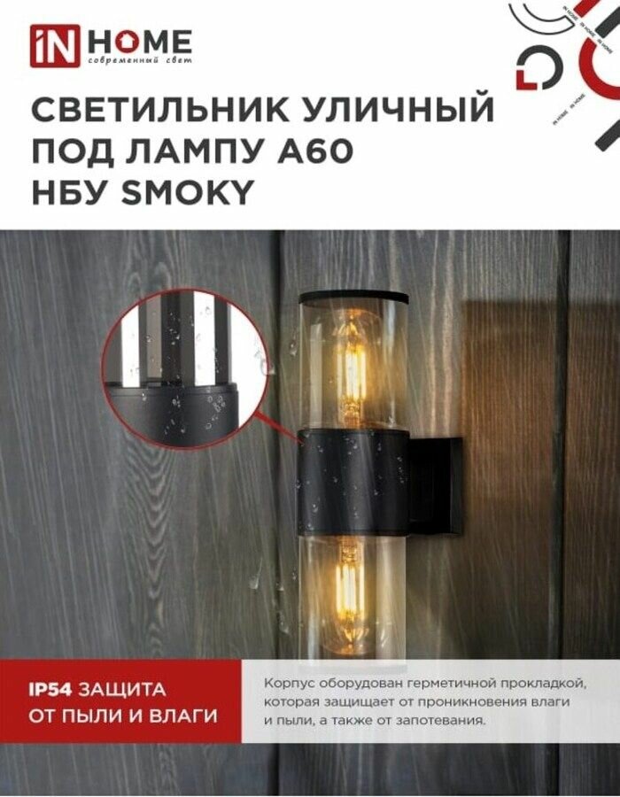 Светильник уличный настенный двусторонний НБУ SMOKY-2хA60-BL алюминиевый под лампу 2хA60 E27 черный IP54 IN HOME интересное: