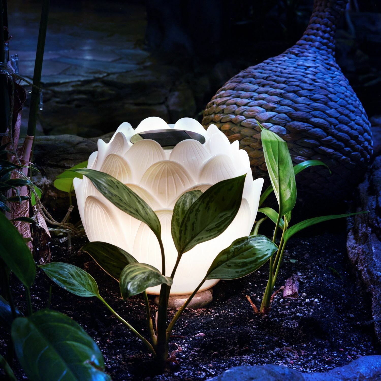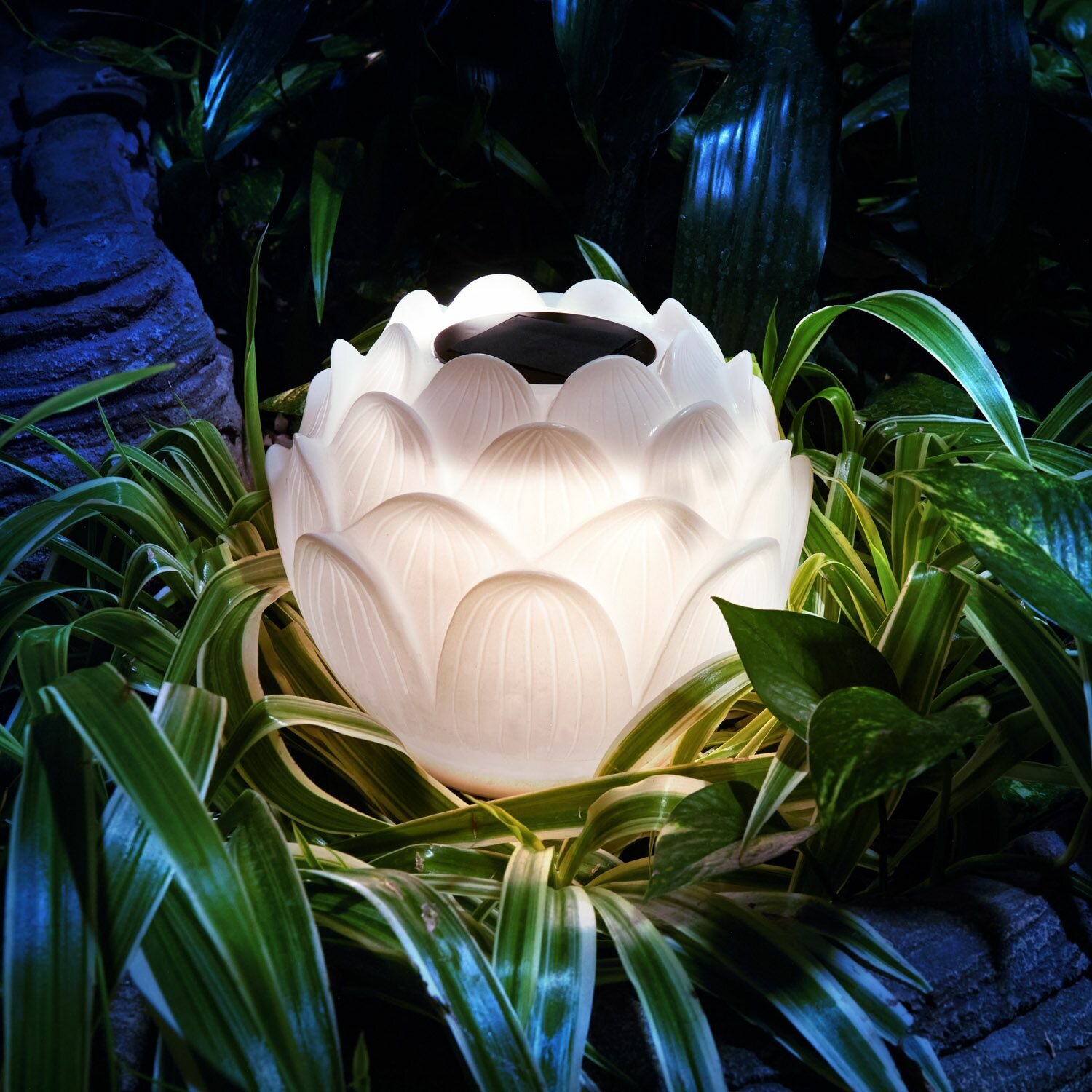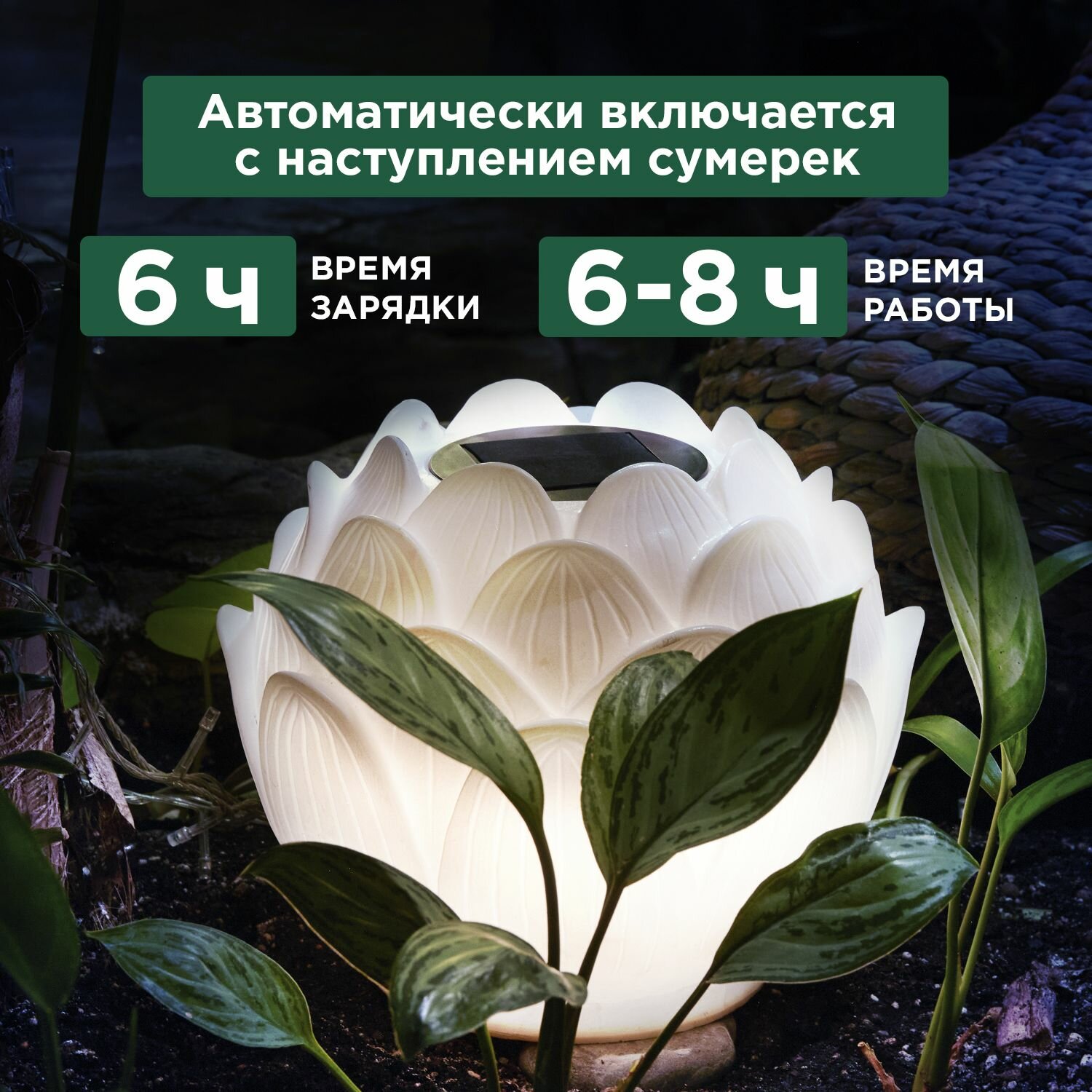 Купить Светильник садовый на солнечной батарее Лотос - Пекин 3000К 15 см для сада, дачи, белый цветок Rexant