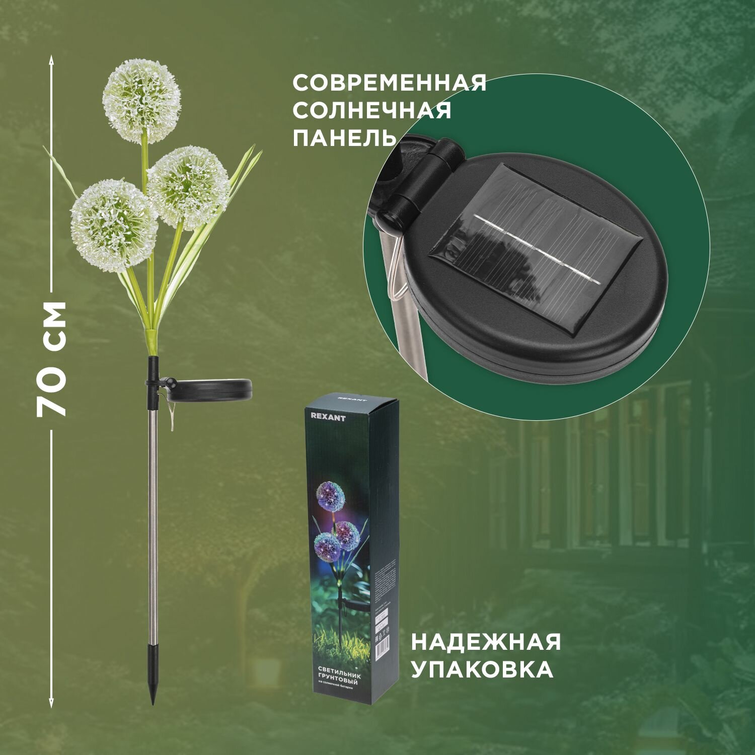 Купить Светильник грунтовый Одуванчик, RGB, встроенный аккумулятор, солнечная панель REXANT